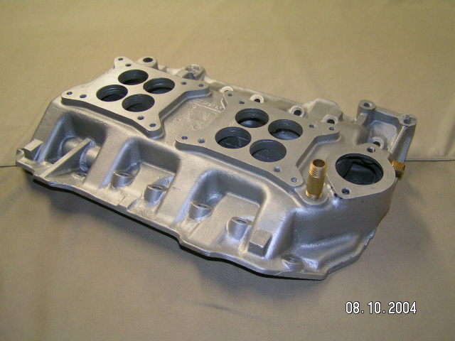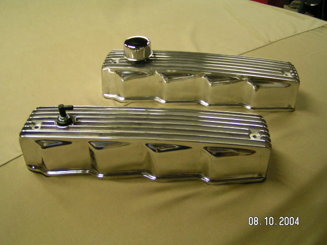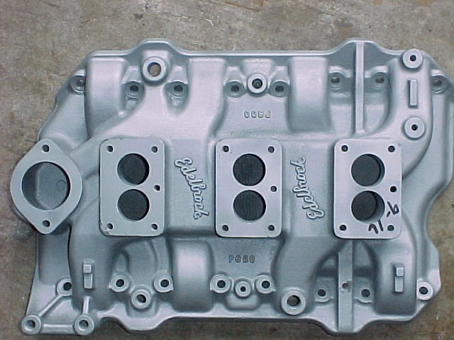 I have more sets of Poly finned aluminum valve covers, a pristine P600 three deuce intake that takes the four-bolt carbs, ultra-rare 56 Fury factory aluminum dual quad intake #1735919, Weiand single four intake, NOS V-8 complete breaker plate assembly…