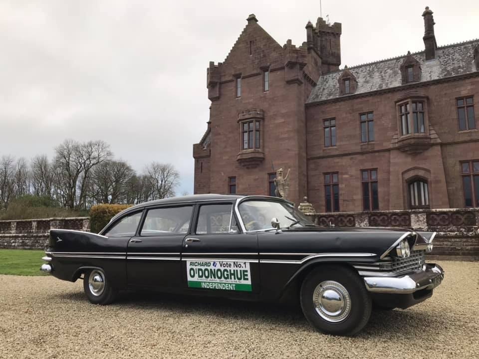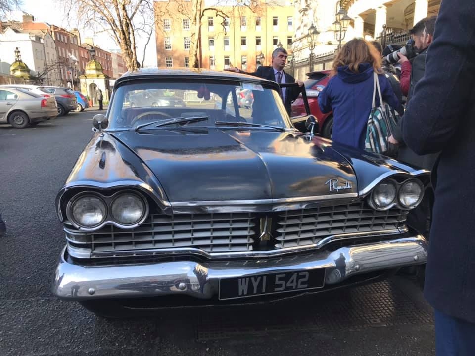 The registration for the tags that the limousine bore seemed to be lost in antiquity; and the bureaucratic hurdles of reclaiming the historical registration proved to be quite a challenge. Richard O’Donaghue, Limerick councilman (at the time) and fellow classic car enthusiast, to the rescue! Richard was able to cut through the red tape, and soon the limousine was street legal. With Richard’s aspirations to become a Teachta Dála in the Dáil Éireann (a representative in the Irish Assembly), Pat campaigned in the limo in support of his friend.