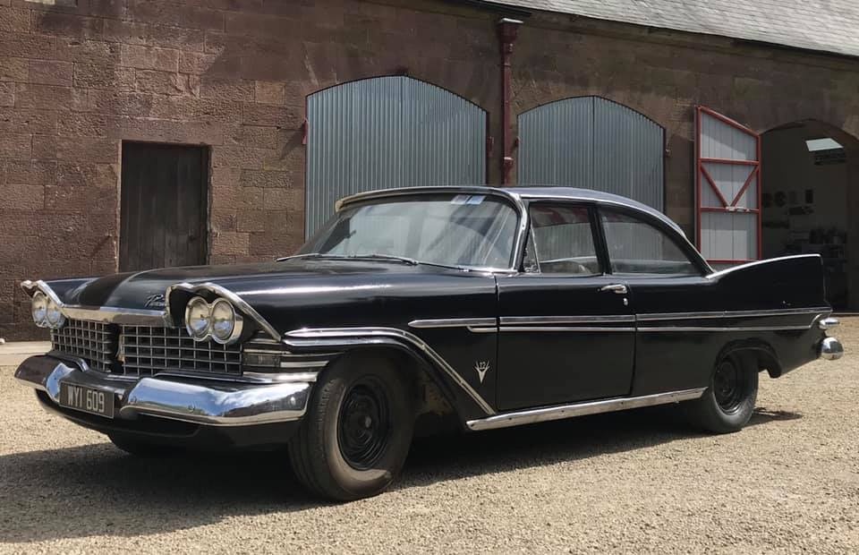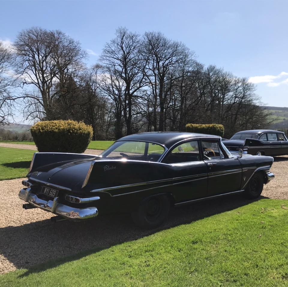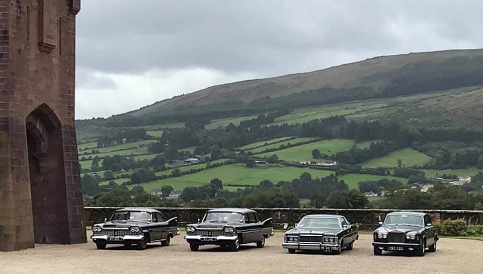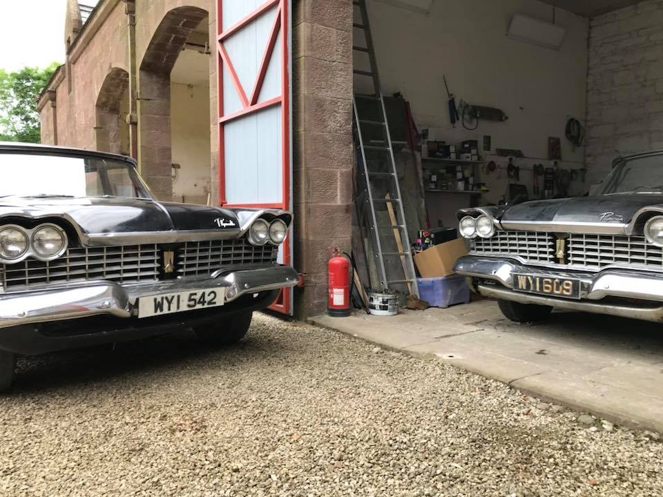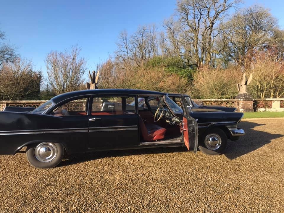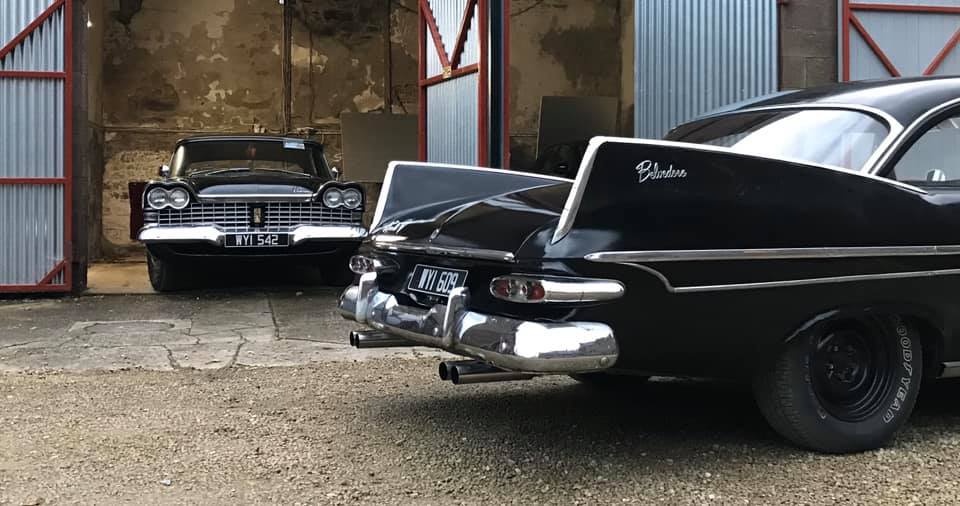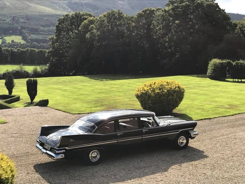 Pat Conroy is the proud owner of three 1959 Plymouths, two of which are road-worthy, all originally assembled as Canadian exports in the F.M. Summerfield Ltd. plant in Dublin, Ireland. The stories behind these cars will unfold in this Showcase entry, but suffice it to say for now that one of the three ended up being a donor car for the first; the end result, that Pat now has a drivable two-door Belvedere sedan and four-door limousine (stretched in Belgium, before its arrival in Dublin). As full time Restorationist-in-Residence at Castle Oliver in Limerick, Ireland (and more about that later), many of Pat’s pictures of his cars are taken on the Castle grounds. Here’s a wonderful sampling of the two vehicles together, before we jump into the stories.