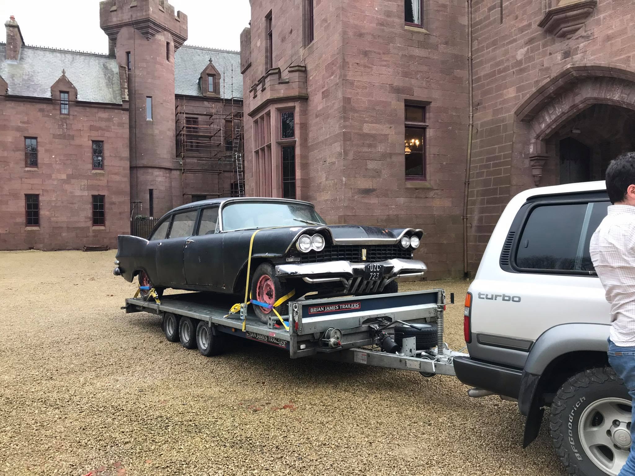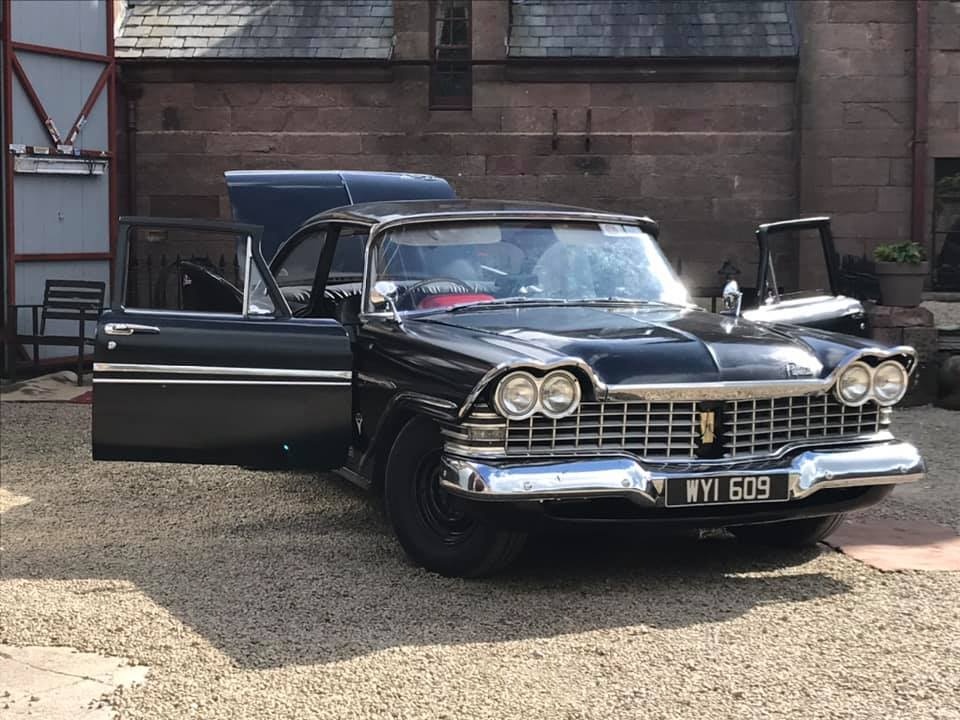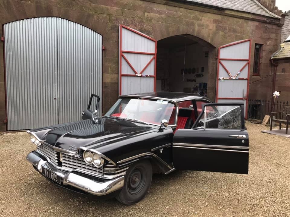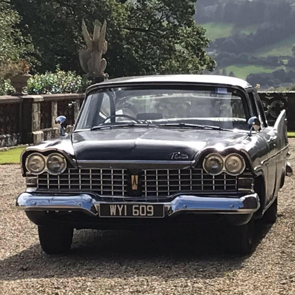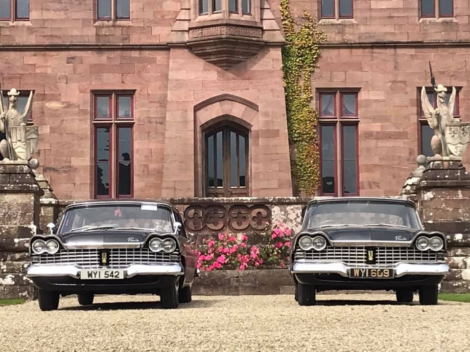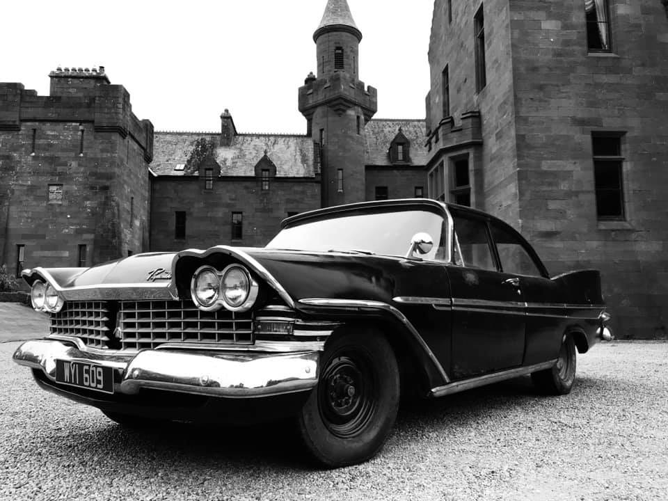 Pat Conroy is the proud owner of three 1959 Plymouths, two of which are road-worthy, all originally assembled as Canadian exports in the F.M. Summerfield Ltd. plant in Dublin, Ireland. The stories behind these cars will unfold in this Showcase entry, but suffice it to say for now that one of the three ended up being a donor car for the first; the end result, that Pat now has a drivable two-door Belvedere sedan and four-door limousine (stretched in Belgium, before its arrival in Dublin). As full time Restorationist-in-Residence at Castle Oliver in Limerick, Ireland (and more about that later), many of Pat’s pictures of his cars are taken on the Castle grounds. Here’s a wonderful sampling of the two vehicles together, before we jump into the stories.