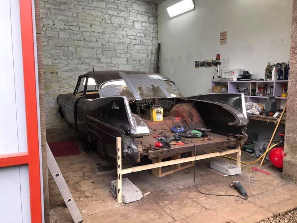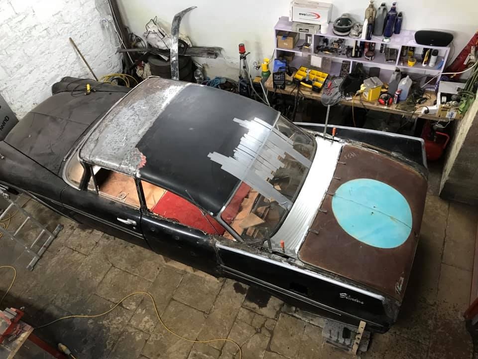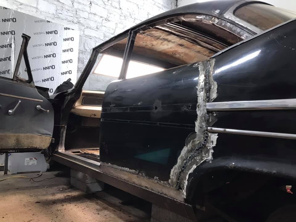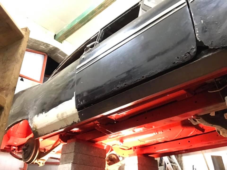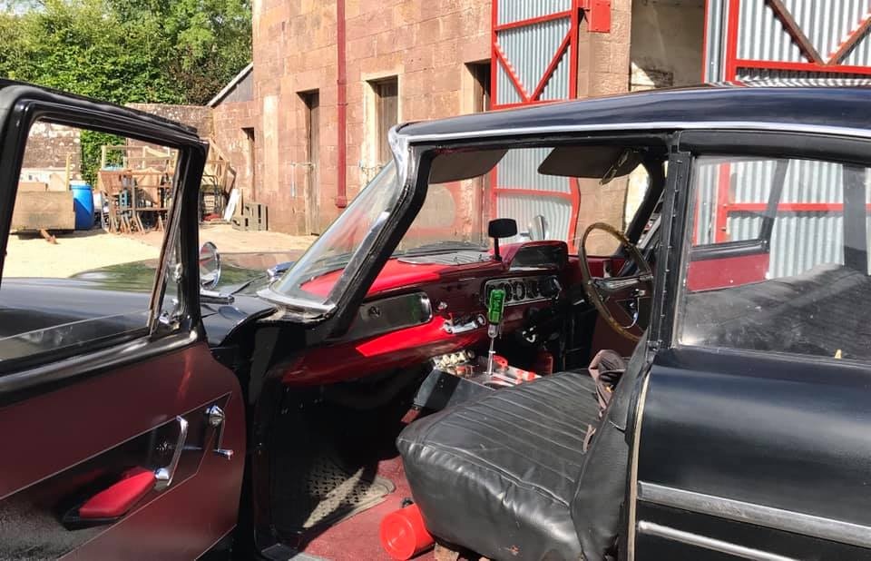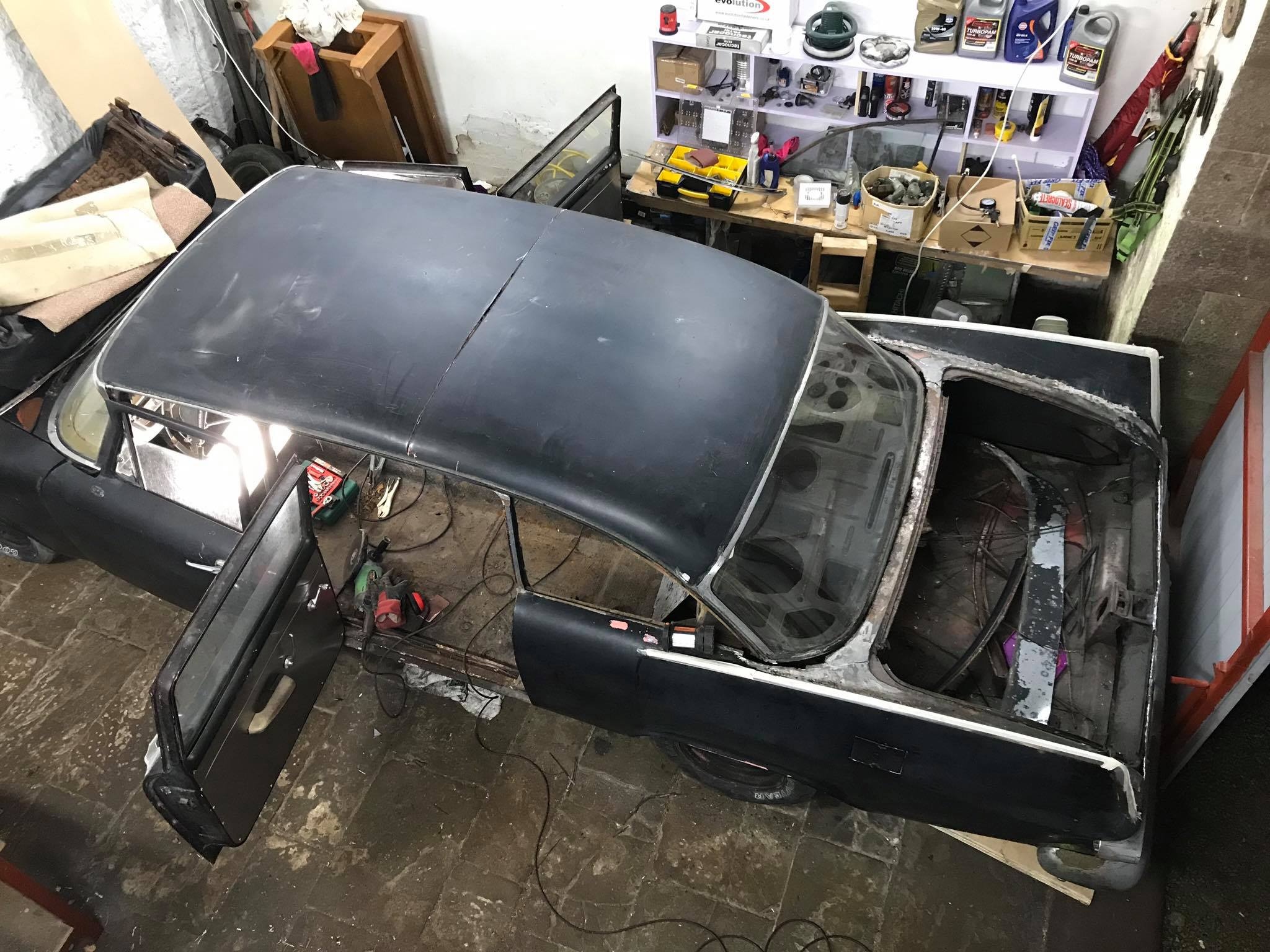 Serendipity plays a large role in this story! On the hunt once more for a donor car, Pat spotted one on Facebook in November of 2017, and pinned down its location with Google Earth; a LHD limo, painted all black, but with a suspicious patch of pink!