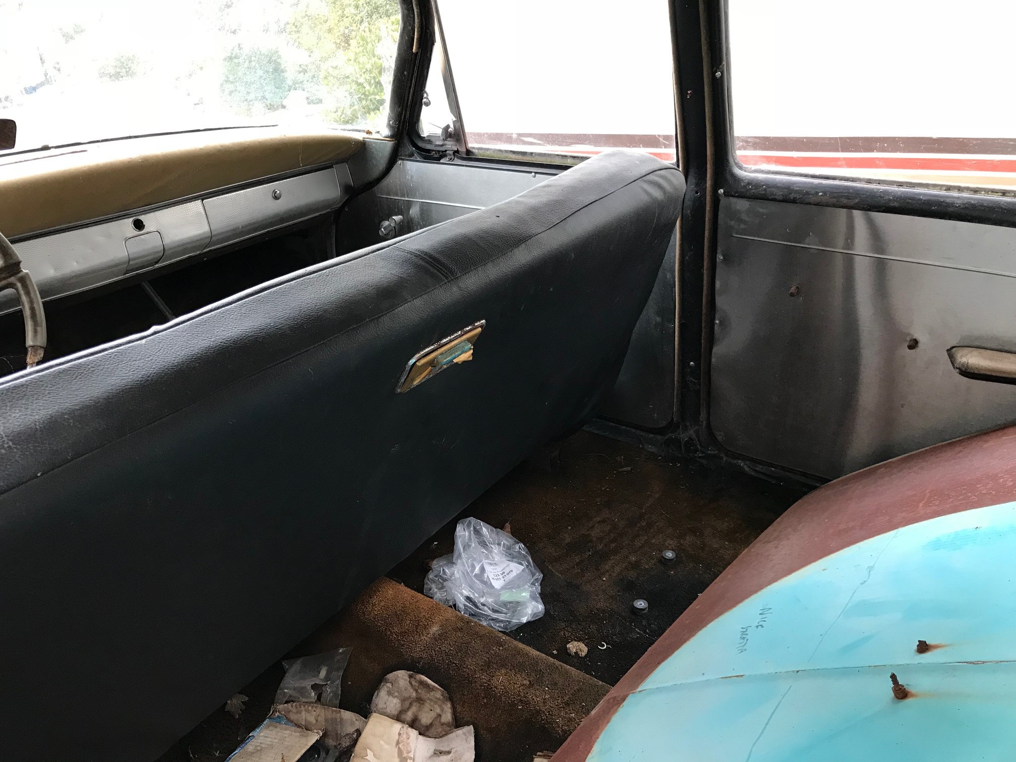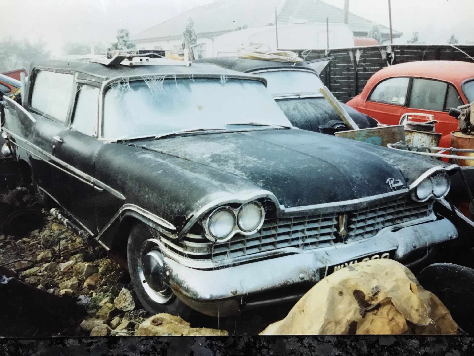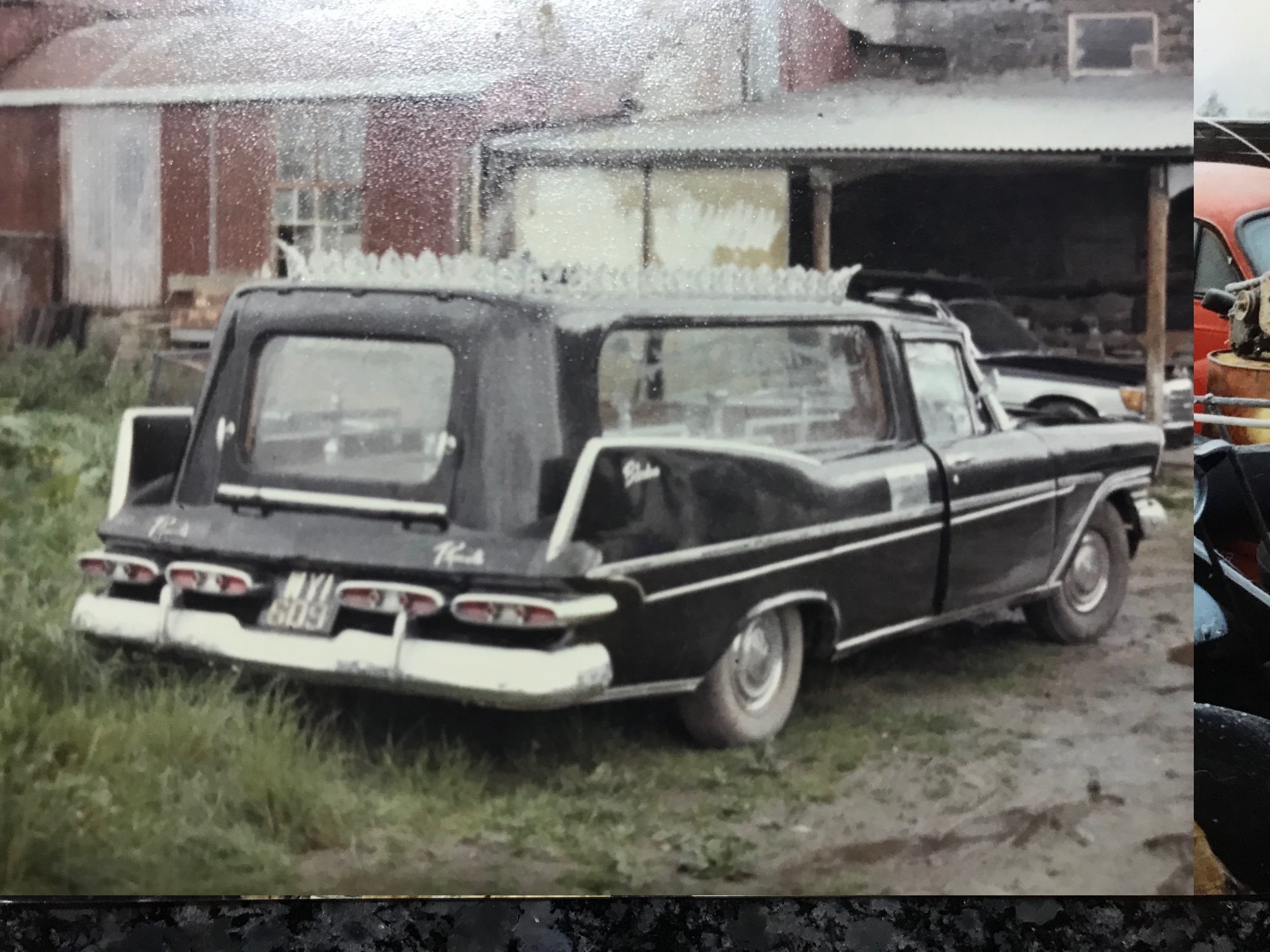 Some time in the 1970’s, an enterprising funeral director converted a 1959 four-door sedan into a hearse, and in the process had the rear doors welded shut to make a two-door: