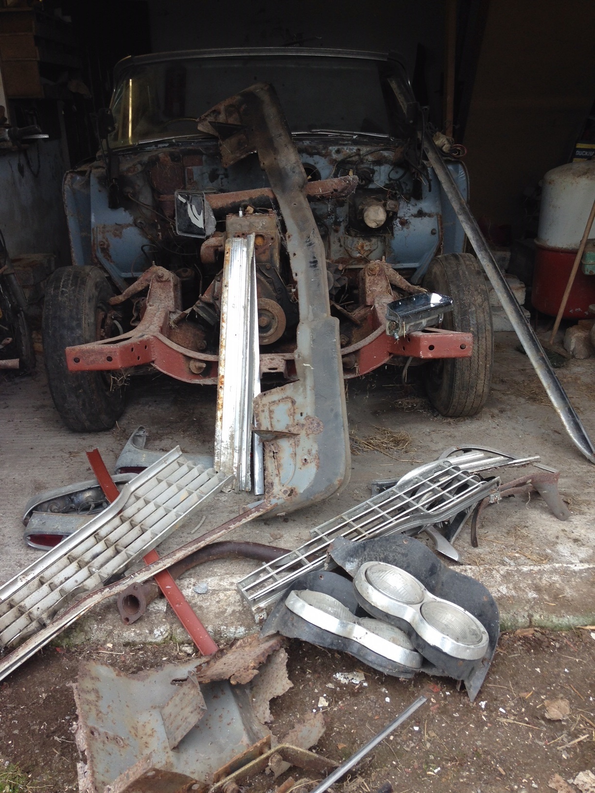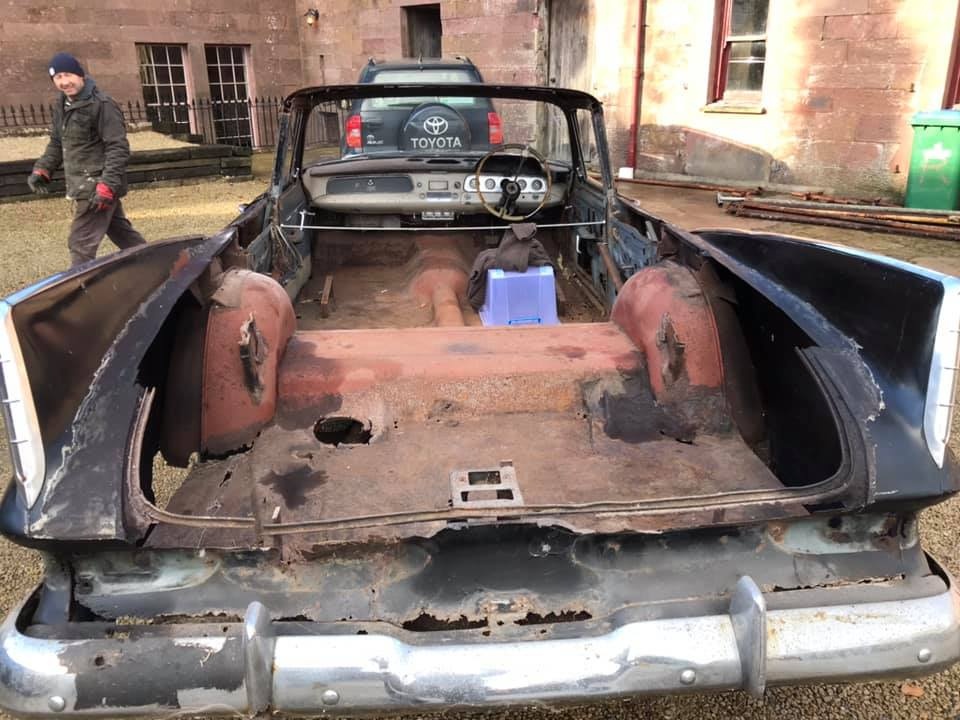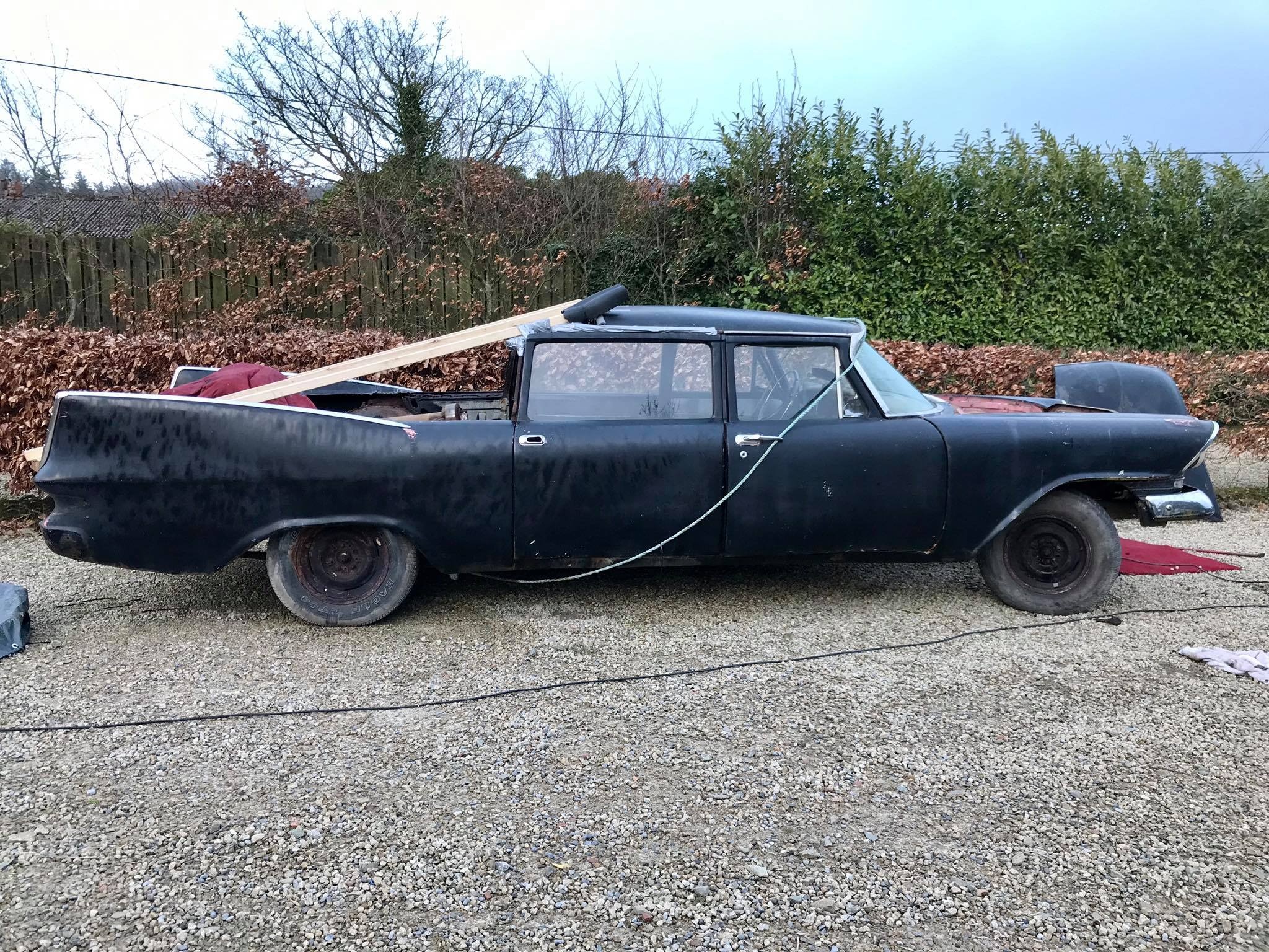 Fast forward 26 years. Pat’s sedan restoration efforts had been stymied by the lack of a suitable donor, and his career had taken him abroad for many of those years. The remnants of the hearse languished in the shed of a friend where Pat had parked it in 1990, and after subsequently losing touch with that friend, Pat thought perhaps the car was now long gone. At a chance encounter with the friend at a family funeral in 2016, however, he learned that not only was the vehicle still around - it was exactly where he had parked it in 1990! Now employed full time in residence at Castle Oliver, he brought the rusting hulk home with him in September of that year.