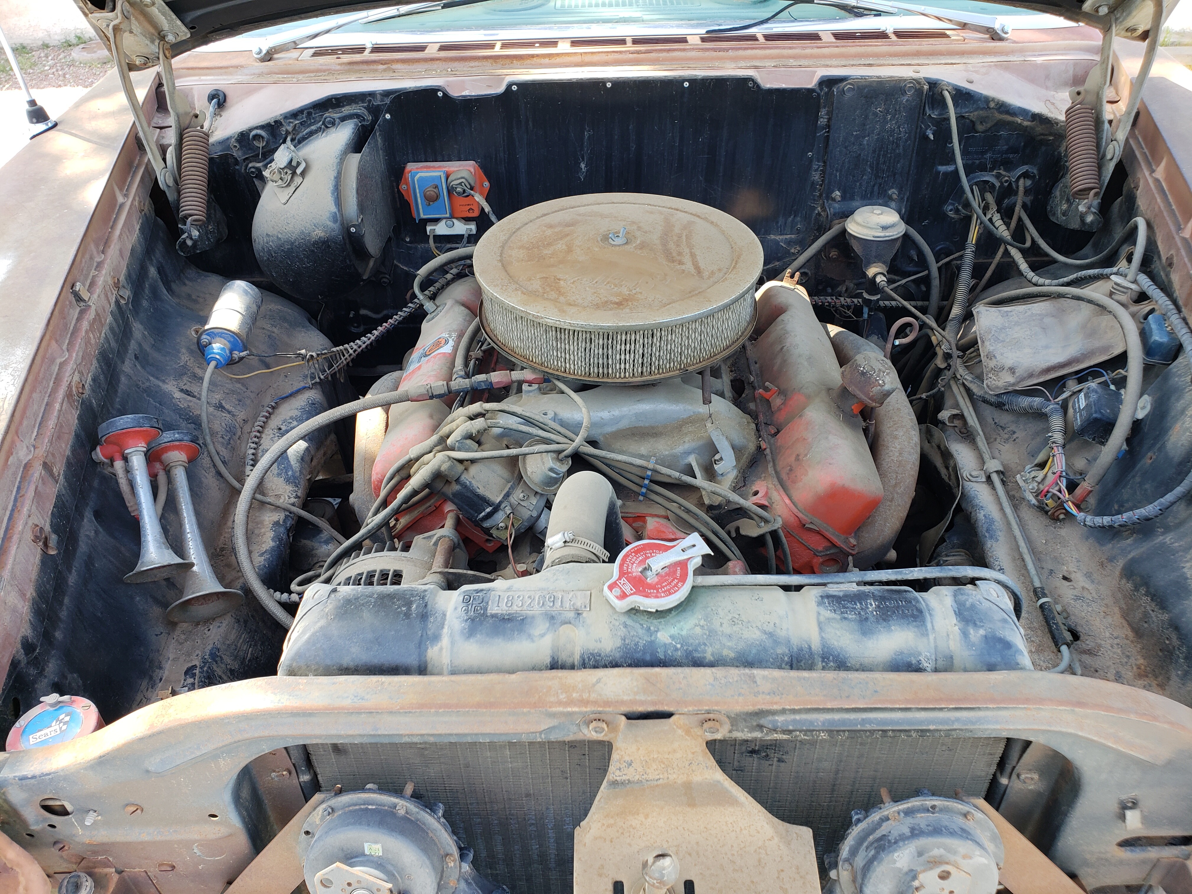 So I was looking at the photos again of under the hood, dying to know more about that DLI motor but couple things I noticed. your battery tray looks pretty solid. My SF has some pretty bad rot there. But other than that is that a factory heater delete on the fire wall? I know it being an Arizona Car it might have been ordered that way and also what is up with the air horns on the passenger side? Look like the kind that play Dixie just like the general lee hahaha. And have you checked to see if its the stock rear end and what gear is in it?