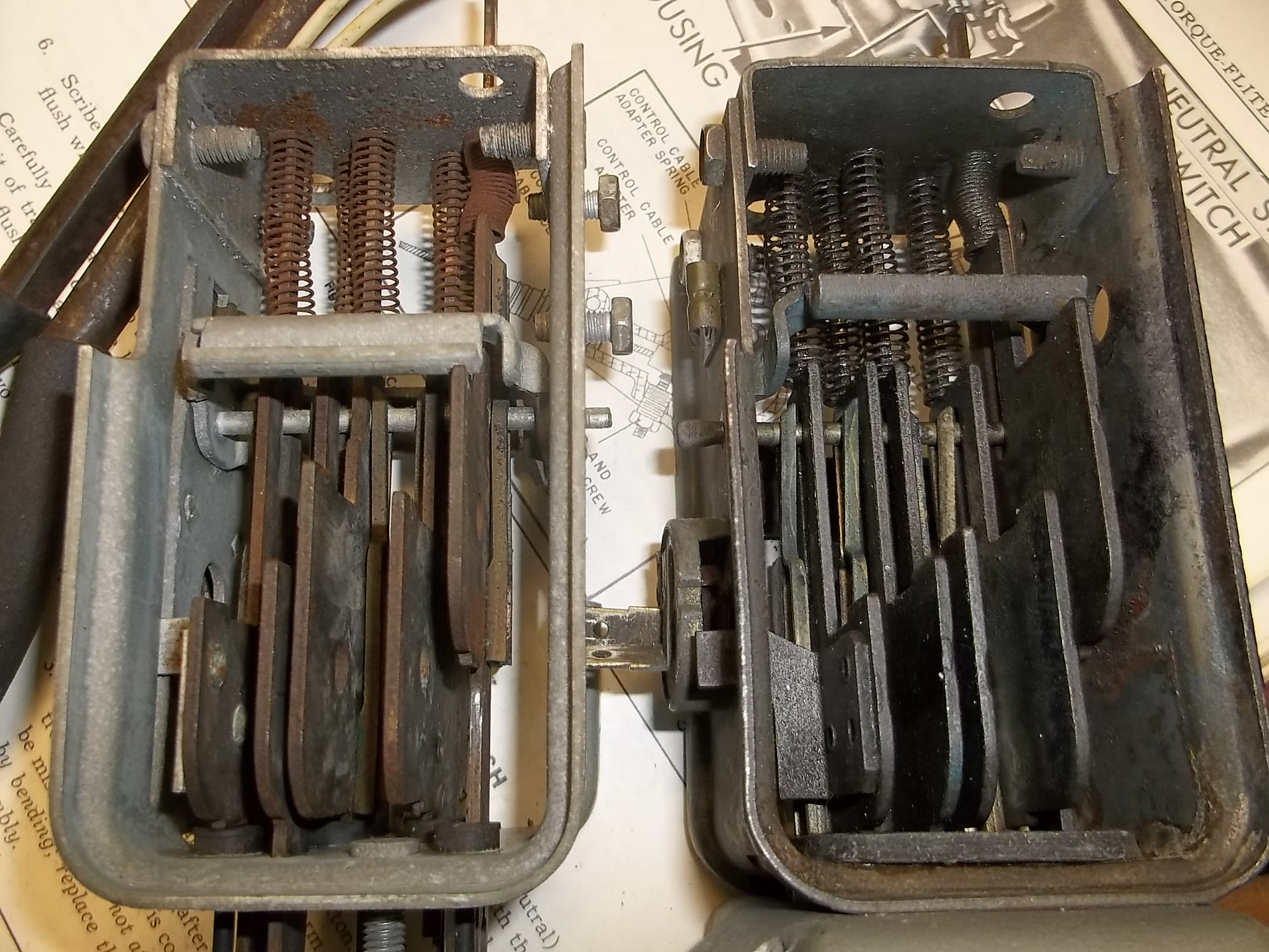 Just took the shifter Mechanism out of the Desoto and that Sucka looks New, no rust whatsoever, I measured the slides at different points and there is a slight difference from one to the other but that is probably taken care of in the adjustment. The new plan is to take the one I put in the other day and install the one from the Desoto and cross my fingers, that’s it unless someone has another suggestion.