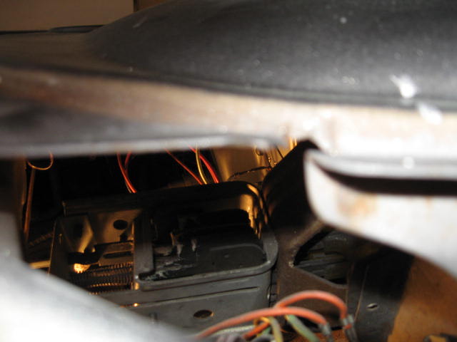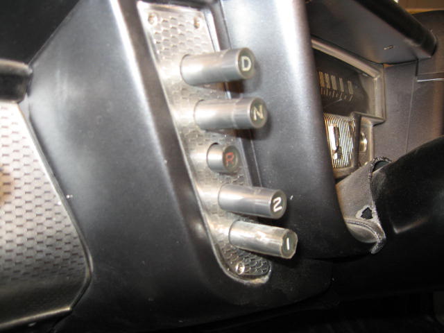Hope someone can help. Here’s the deal. The buttons in the convertible when pushed would disappear into a black hole only when 47 people were watching me leave a show so they could see how the pushbuttons worked. Needless to say, it’s a very embarrassing situation. Knowing the shifter is very difficult to replace I removed the front seat and lowered the parking brake pull handle expecting to spend a lot of time on my back with my head as far up into the dash (not the other thing) trying to see what I was doing. I had to take the Top and headlight switches out of the way so I could reach my hand up to find the top stud and remove the nut. Amazingly the mechanism came out very easily after removing the shifter cable. I had tried to solve the disappearing button problem previously by squeezing the prongs that hold the buttons together to get a better grip on the buttons. As a note those pieces are hardened steel and the 2nd gear prongs had one side break off. I figured that since I’ve never used the second gear button ever I would just let it hang there. I couldn’t control the Drive and Neutral buttons so decided to replace the mechanism making sure the prongs were able to hold the buttons tightly. Well after 5 hours of trying to get the mechanism back on the studs, never both but either the top or the bottom. With no success and much frustration I shifted my body, turned on my right shoulder so I could reach higher and with one try that sucker slipped right on the studs, both of them this time. I Hooked up the cable reinstalled the switches and brake handle and went for a road test.