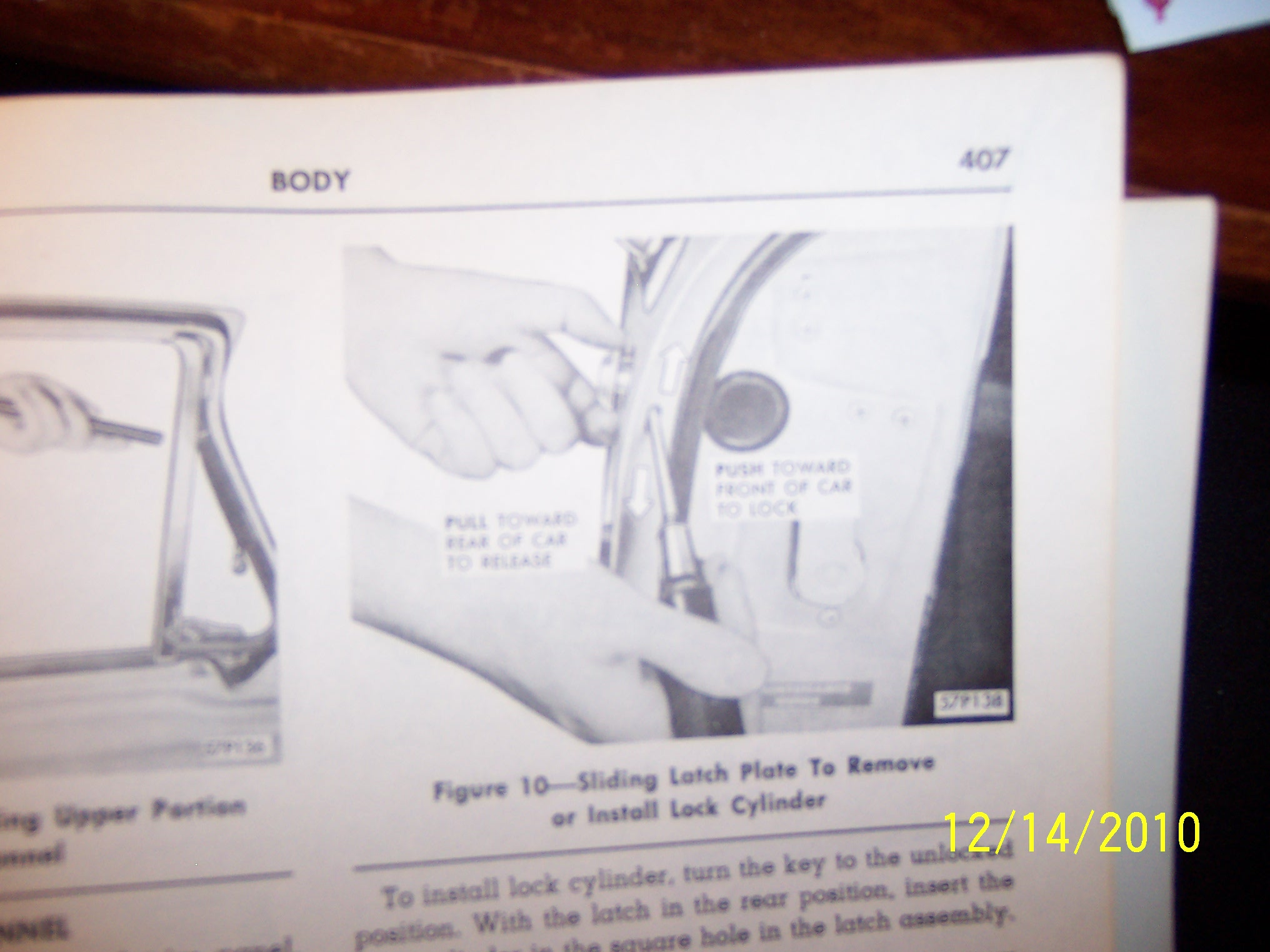 page 407 pulling or pushing the tab to unlock or lock the cylider to the door outer shell on the inside.