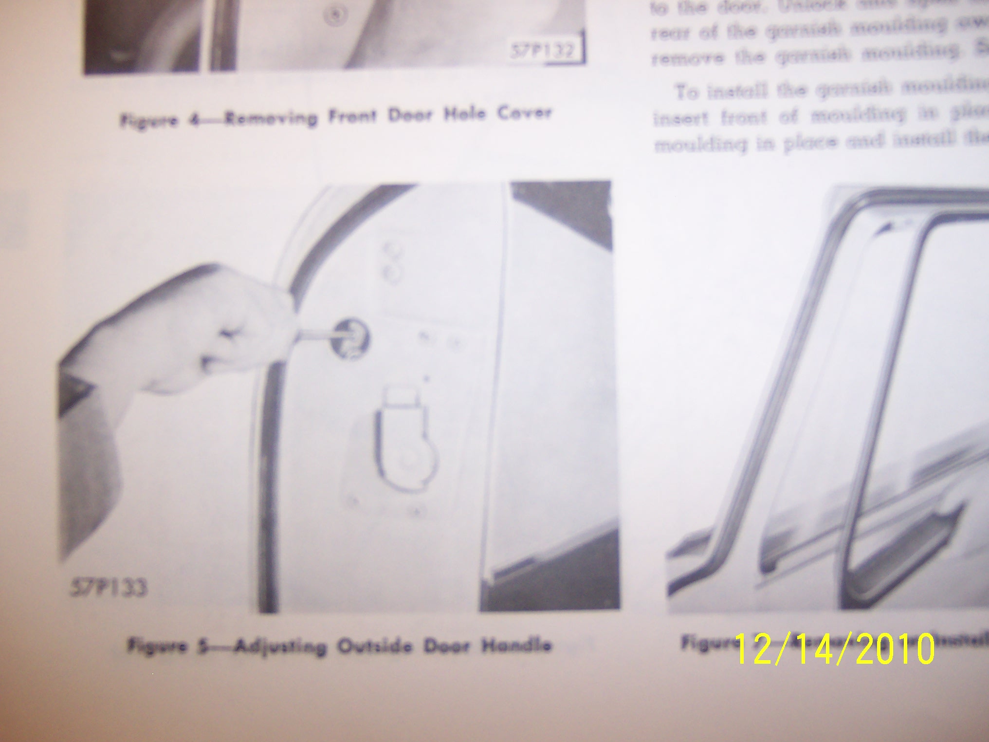 Taking the door panel off helps to see this area. If you have the main 57/58 Yellow Factory Service manual a great view of this is on page 406. On page 405 it shows you to undo the adjusting pawl that attachs to the door handle to gain better access. This is thru the inner jamb area that has the door catch on it.