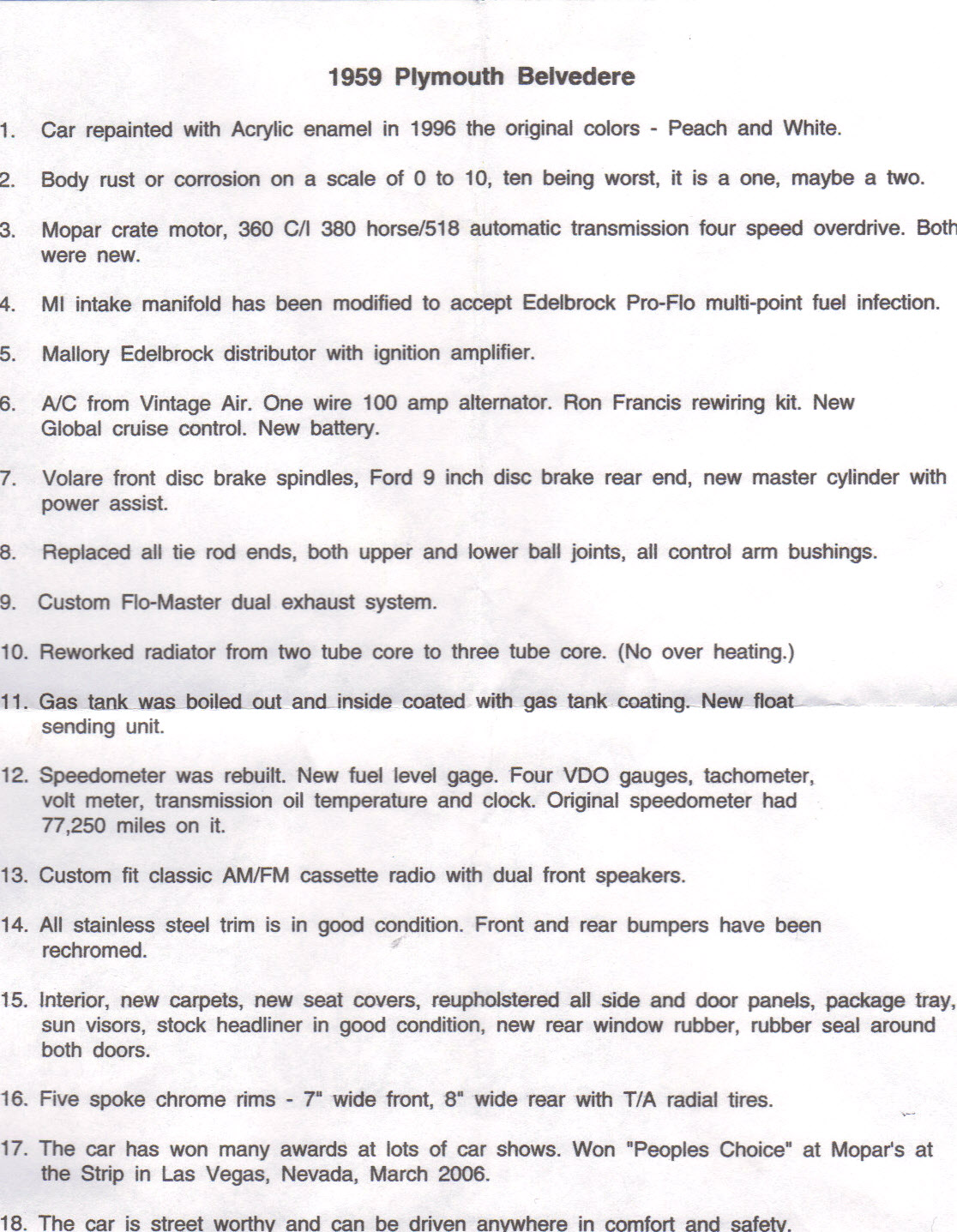 I wrote about a document Ray gave me with all the specs (modifications) of his car and I just scanned it: