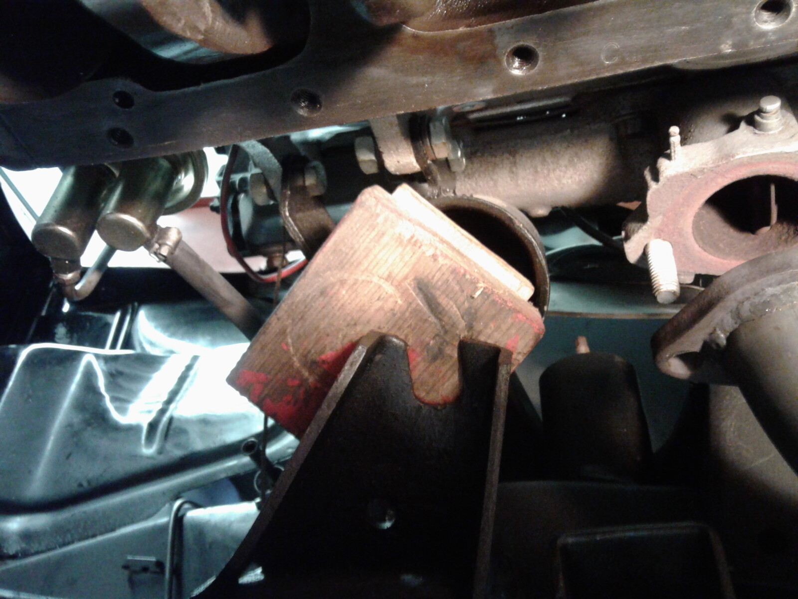 Some tips when it’s necessary to replace your oil pump without pulling the engine. READ THE SERVICE MANUAL AND PAY ATTENTION TO WHAT IT SAYS. I glanced thru it and then did it my way. (Wrong) I took the front u joint off but I don’t think it’s necessary. Remove the two bolts on the transmission mount and insert two long 3" bolts in the holes to keep it from moving to far back or forward. Take exhaust flange nuts off the manifold studs, take the nuts and washers off the motor mounts. I removed the radiator so l could get the fan off. The fan was so close to the radiator it would have hit the radiator when l raised the front of the engine. Drop the steering link. I did this on my lift so I used my tall screw jack with a 6" long piece of 4 x 4 placed under the crank pulley to lift the front of the engine. You can rent one or buy one at Harbour Freight, Lift the engine enough to get the rubber mounts out of the housings then place 2 inch, l said 2" thick wood blocks between the round metal mount housing and the bracket on the engine then lower the engine. That gives you ample clearance to get the pan off. When installing the new pump make sure the collar at the base of the pump shaft is seated all the way into the hole in the main bearing cap. Refer to utube. I made a pump priming tool out of a 3/8 x 16" ratchet extension that I can power with Yvonne’s new drill motor l got her for Christmas. More to follow.