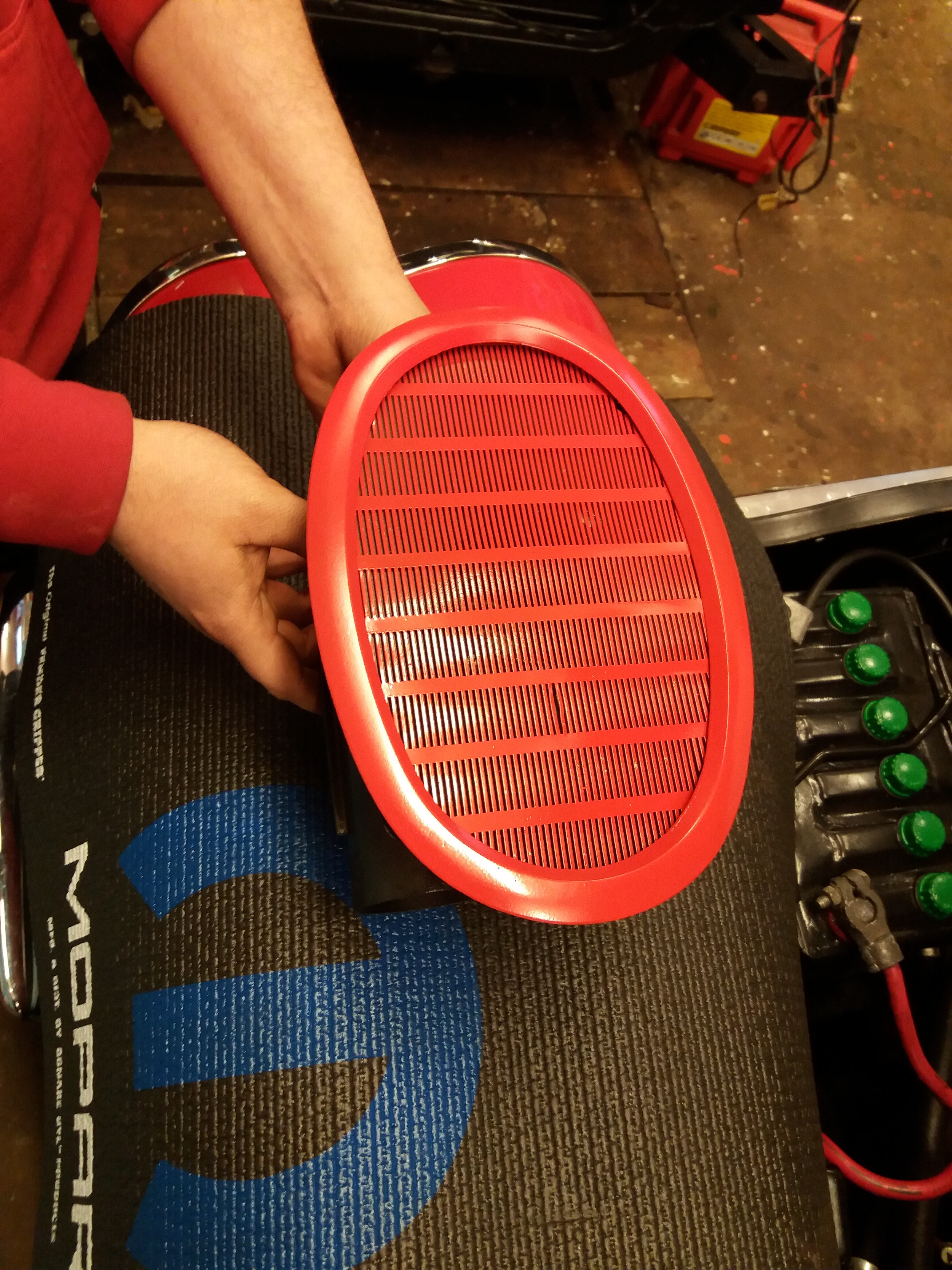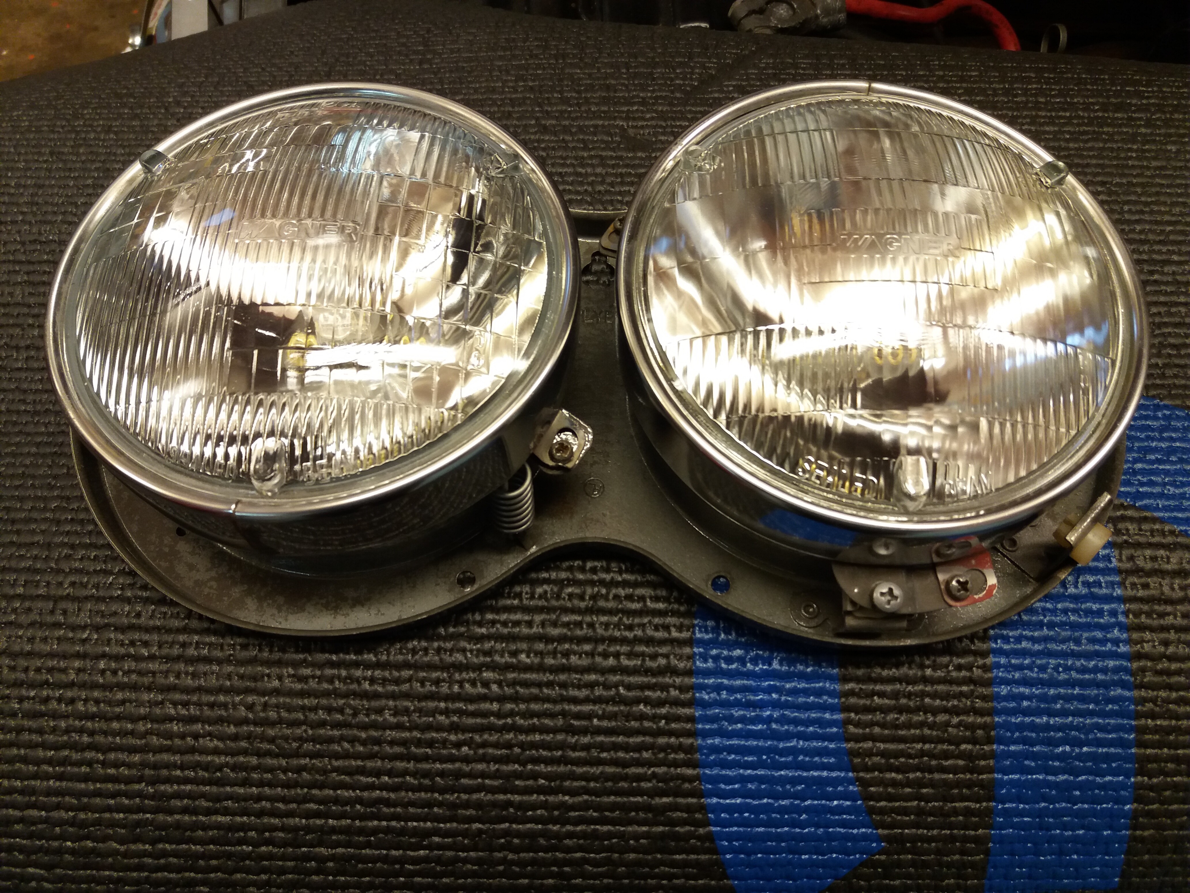 We (Matthew) do not only work on the engine but we do the whole package. He also worked on the rear window defroster that is now ready to go in. And he did some amazing work on the headlights as well, it all looks like new ![]()