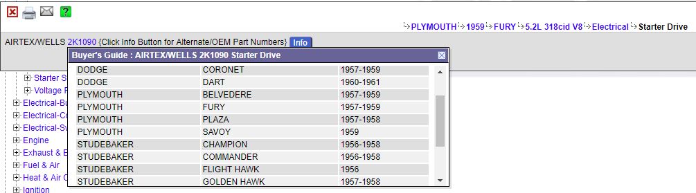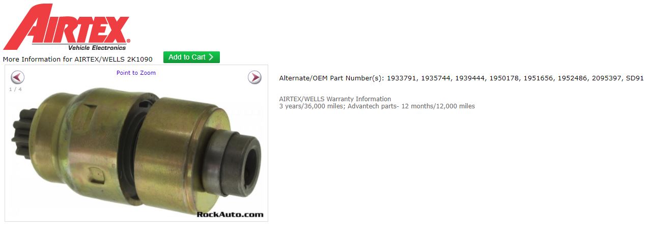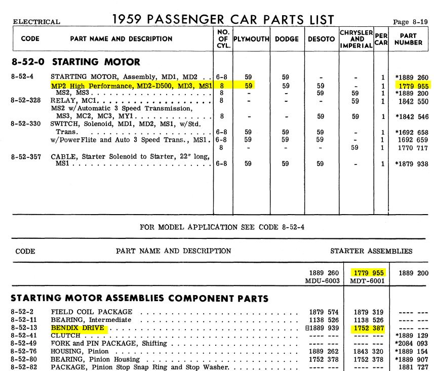 Check my math. I think I’ve highlighted the right starter bendix part number from the parts manual for my 318, which I take to be 1752 387: