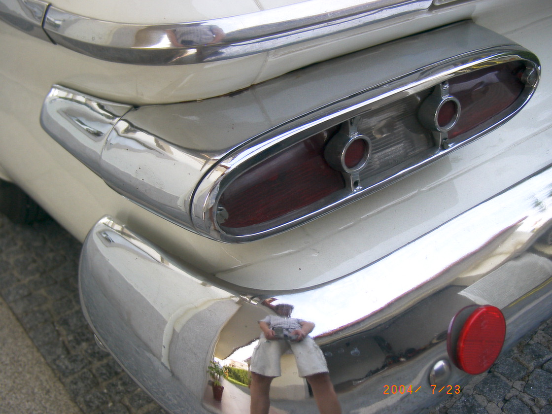 [Taillight bezels:] Back in the early 90’s I tried to restore the taillight assembly. Once I removed the old chrome the metal under it turned into a grey dust and I held more holes in my hands than metal. A very skilled man built a pair of new taillights for my Sport Fury. There is no pit, no spot and never will be!