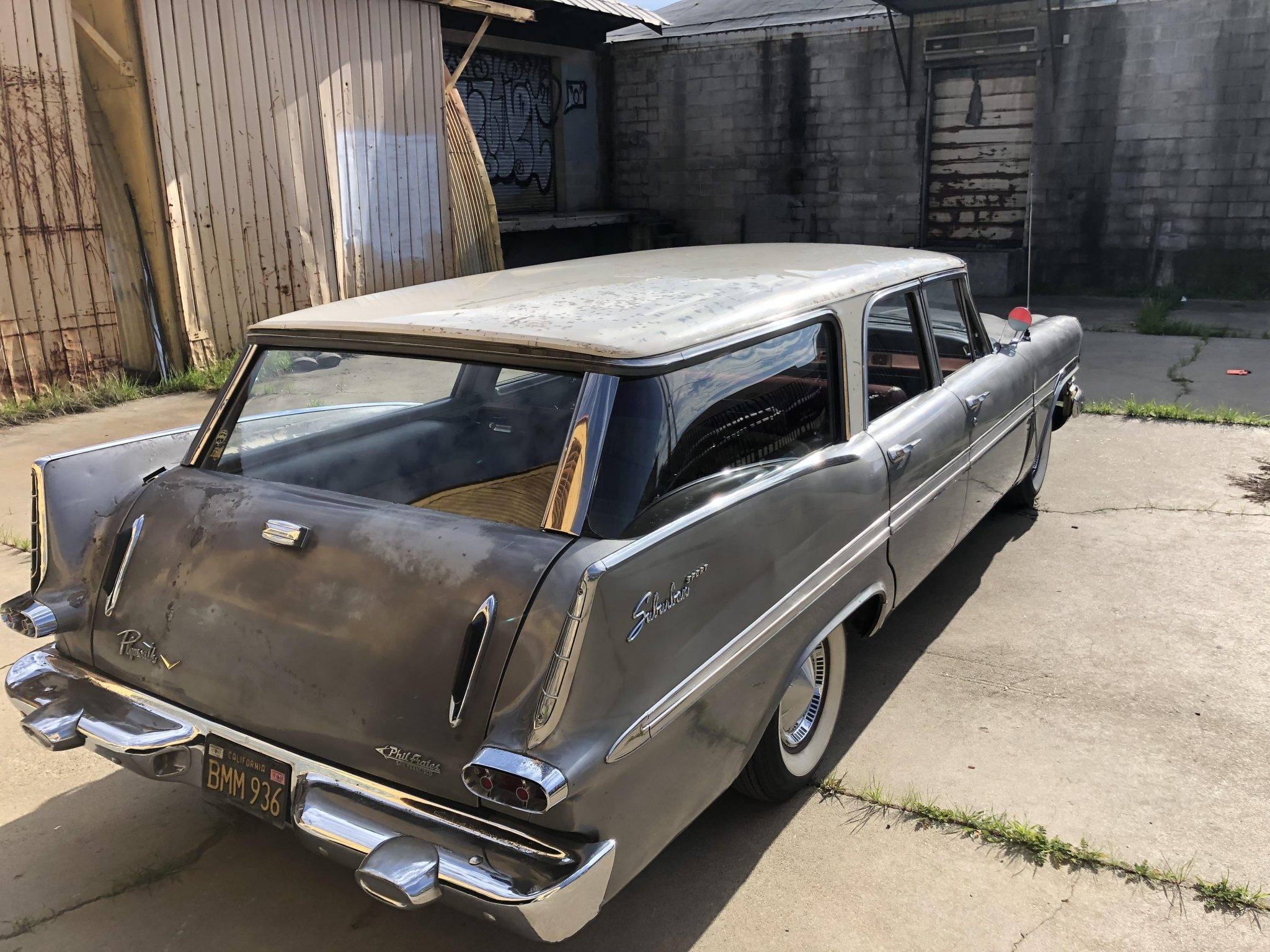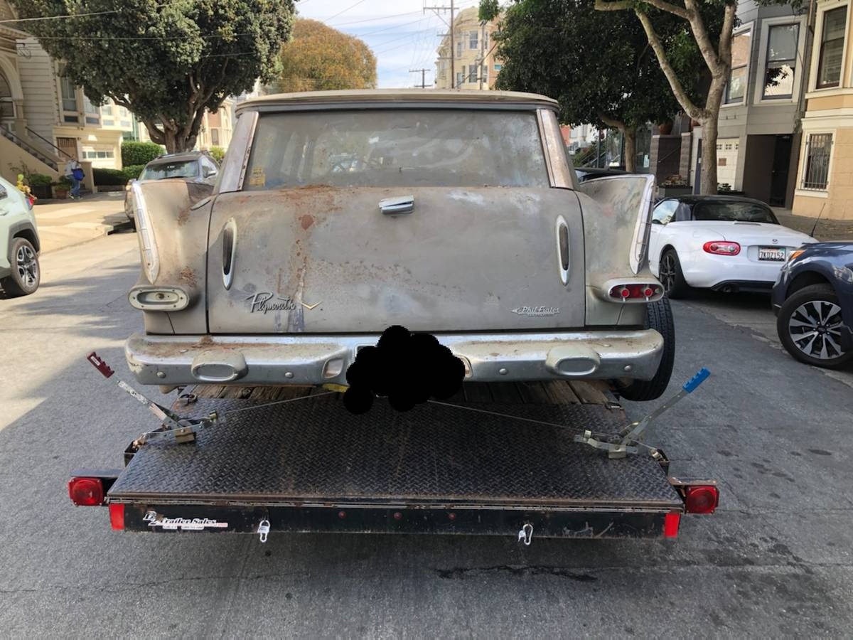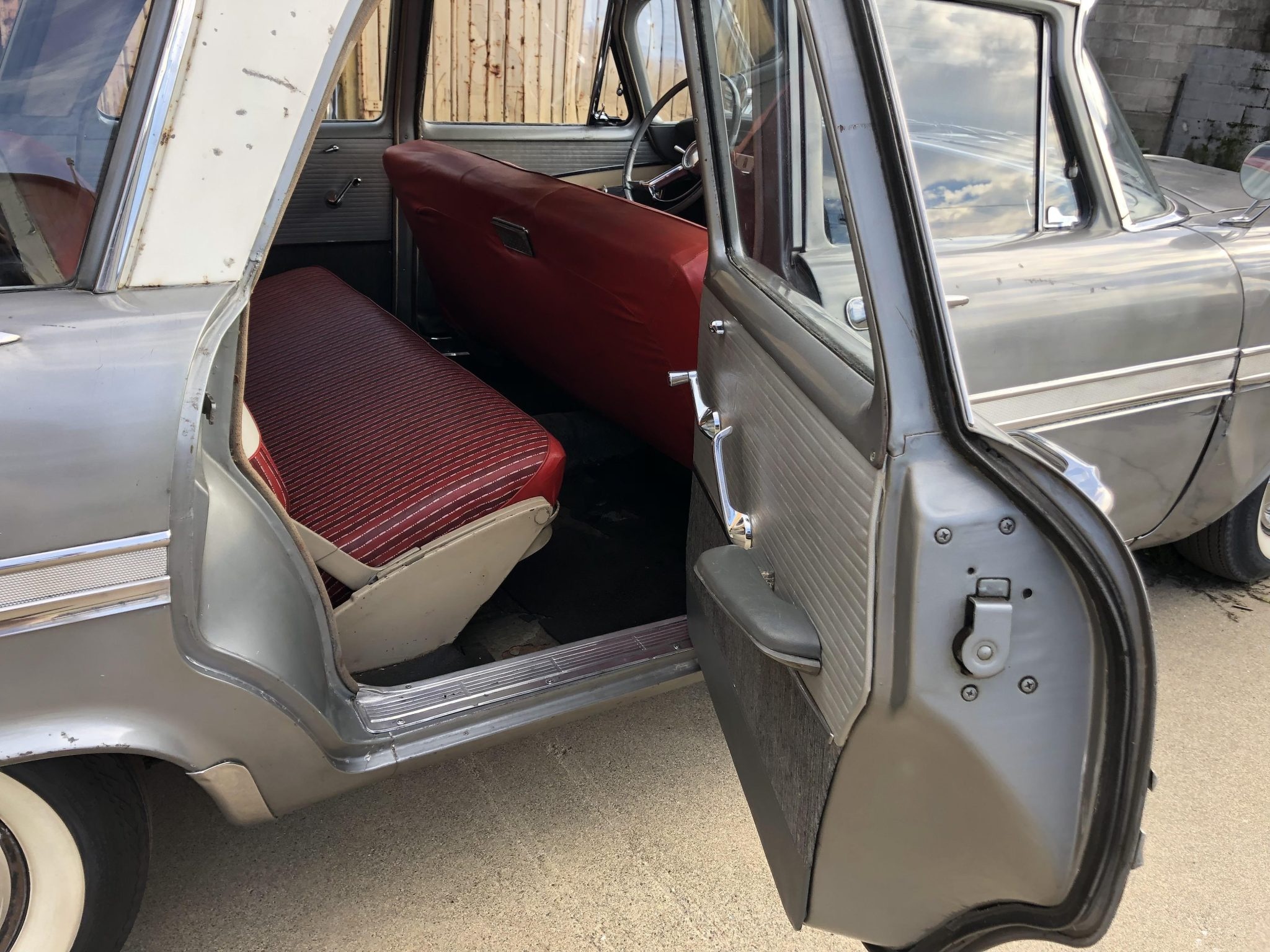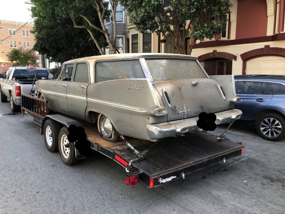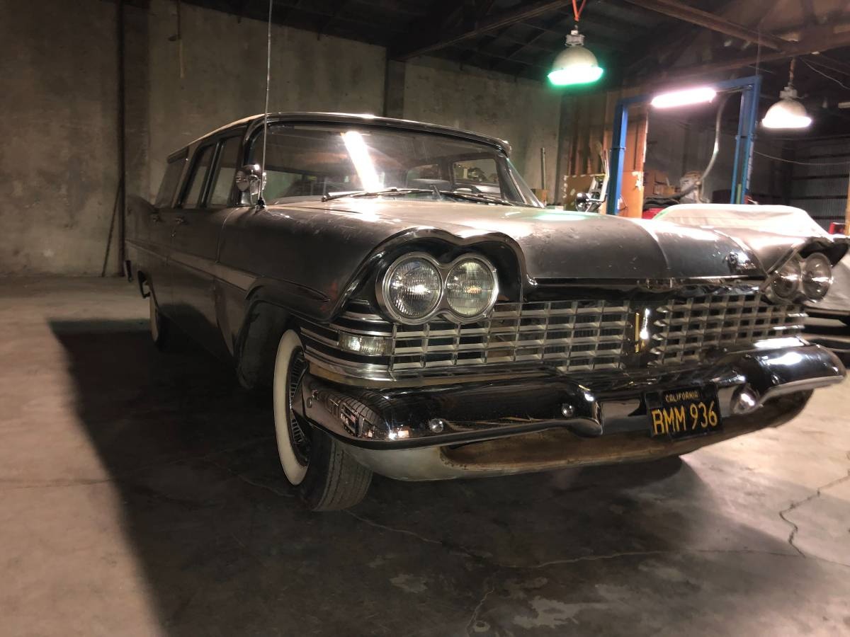 This 1959 Plymouth Suburban Sport station wagon is a non-running project that was purchased new at Phil Frates Plymouth of San Francisco, California. The car was last registered for road use in 1969 when it was parked in a garage until it was acquired by its current owner from the family of its original owner in September 2021. The car is finished in silver with a white roof over a red and gray vinyl interior and is equipped with a 318ci V8 mated to a three-speed automatic transmission. Features include decorative side spears and tail fins, chrome bumpers, a drop-down tailgate with a hand-cranked window, a flat-folding rear seat, a push-button AM radio, and an electric clock. This Suburban Sport wagon is offered by the seller on behalf of its current owner with black California license plates, the car’s contents at the time of its recovery from storage, a tailgate key, and a clean California title in the owner’s name.