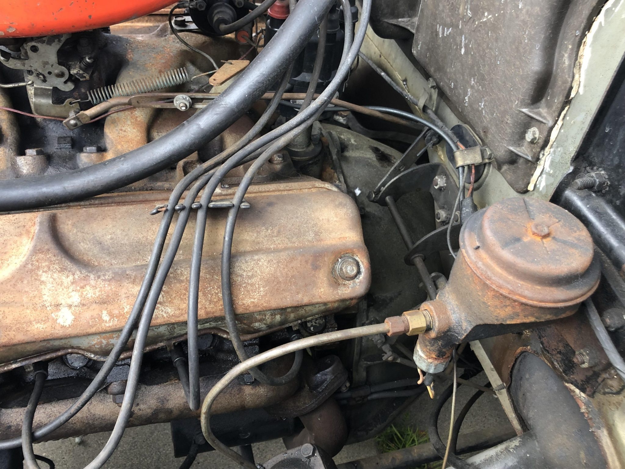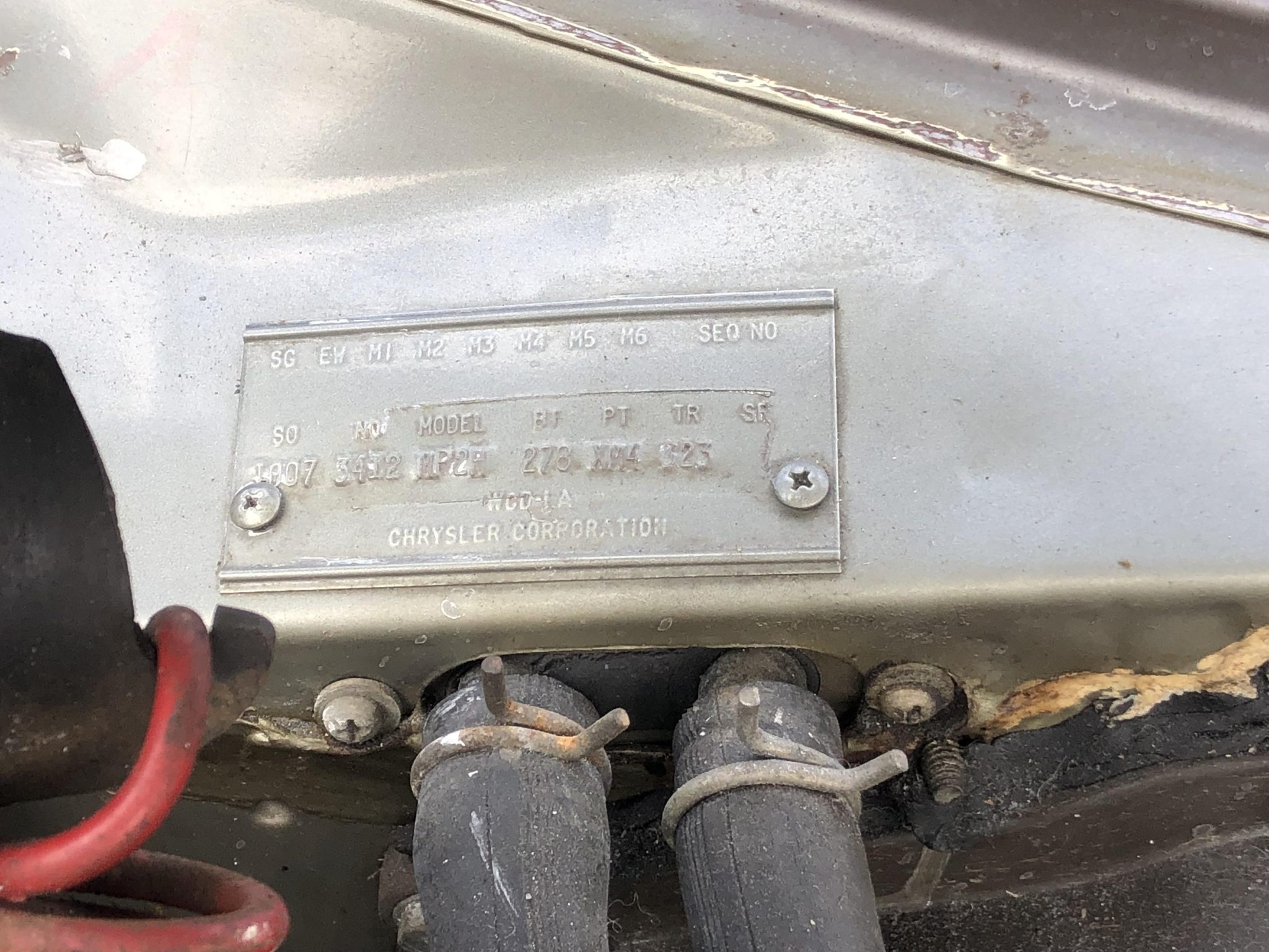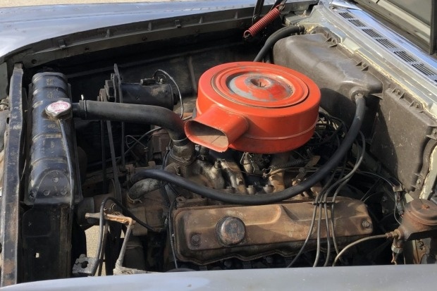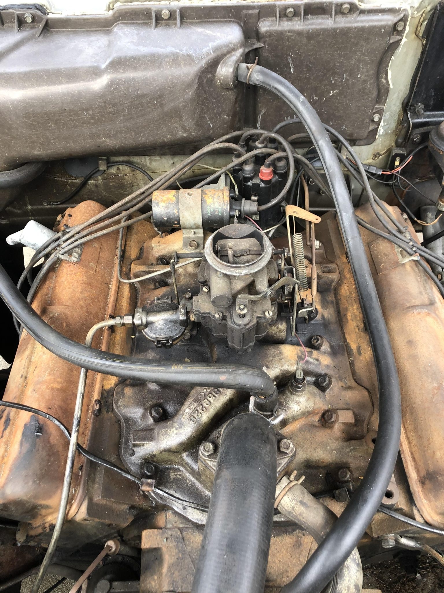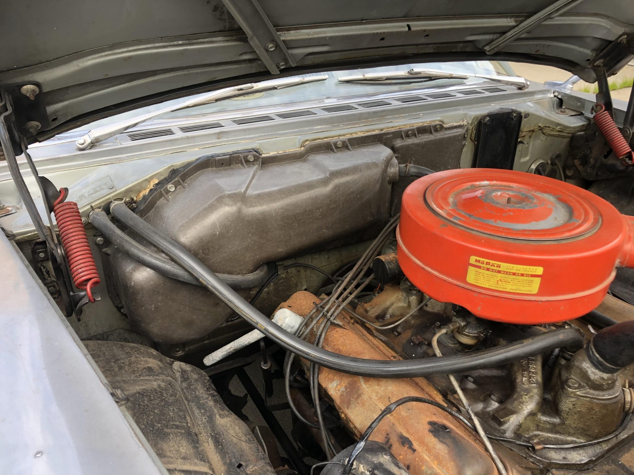 The 318ci V8 came with a Carter two-barrel carburetor and was rated at 230 horsepower and 340 lb-ft of torque when new. The engine does not run and will not turn over by hand.