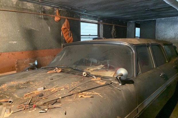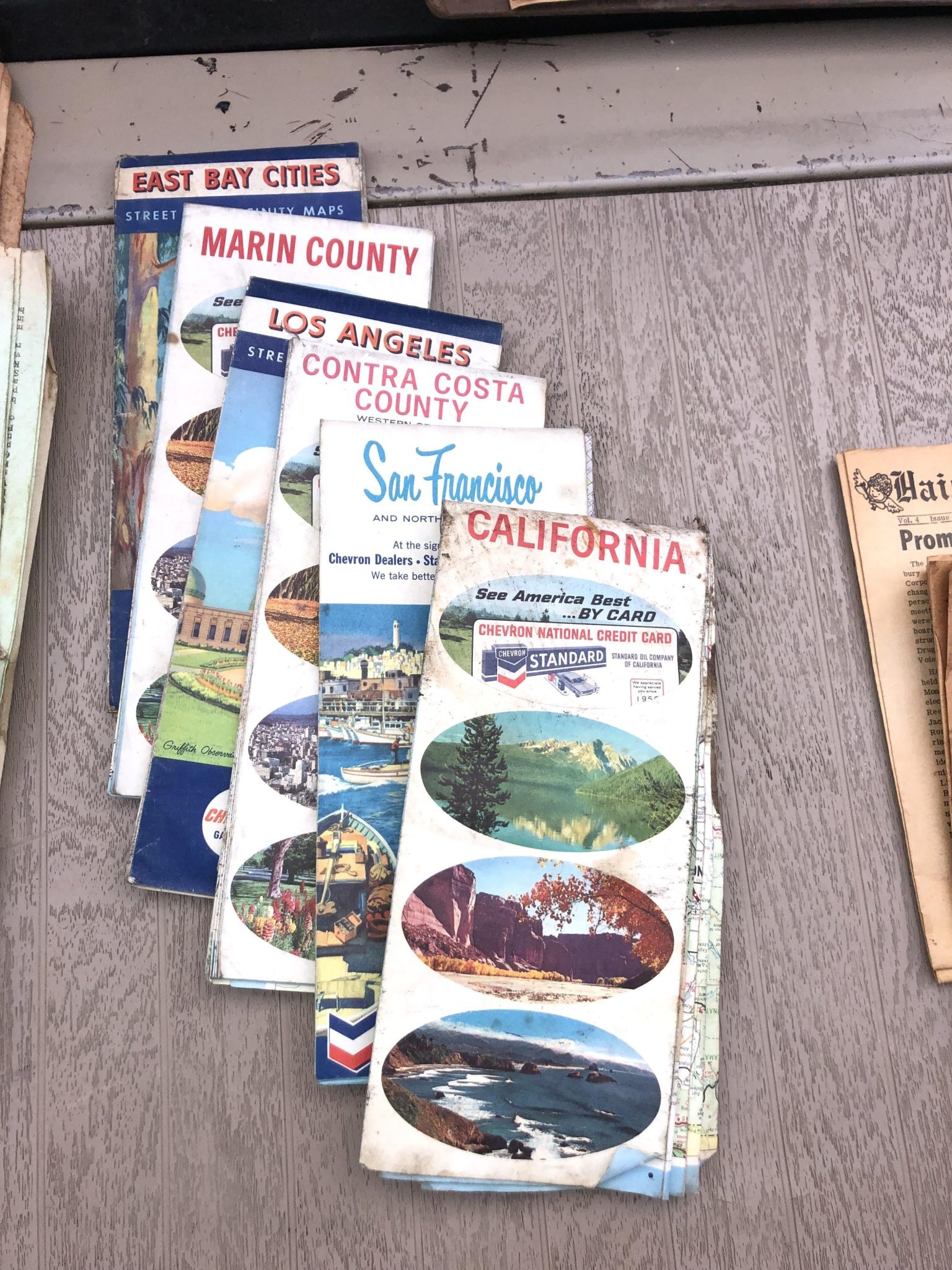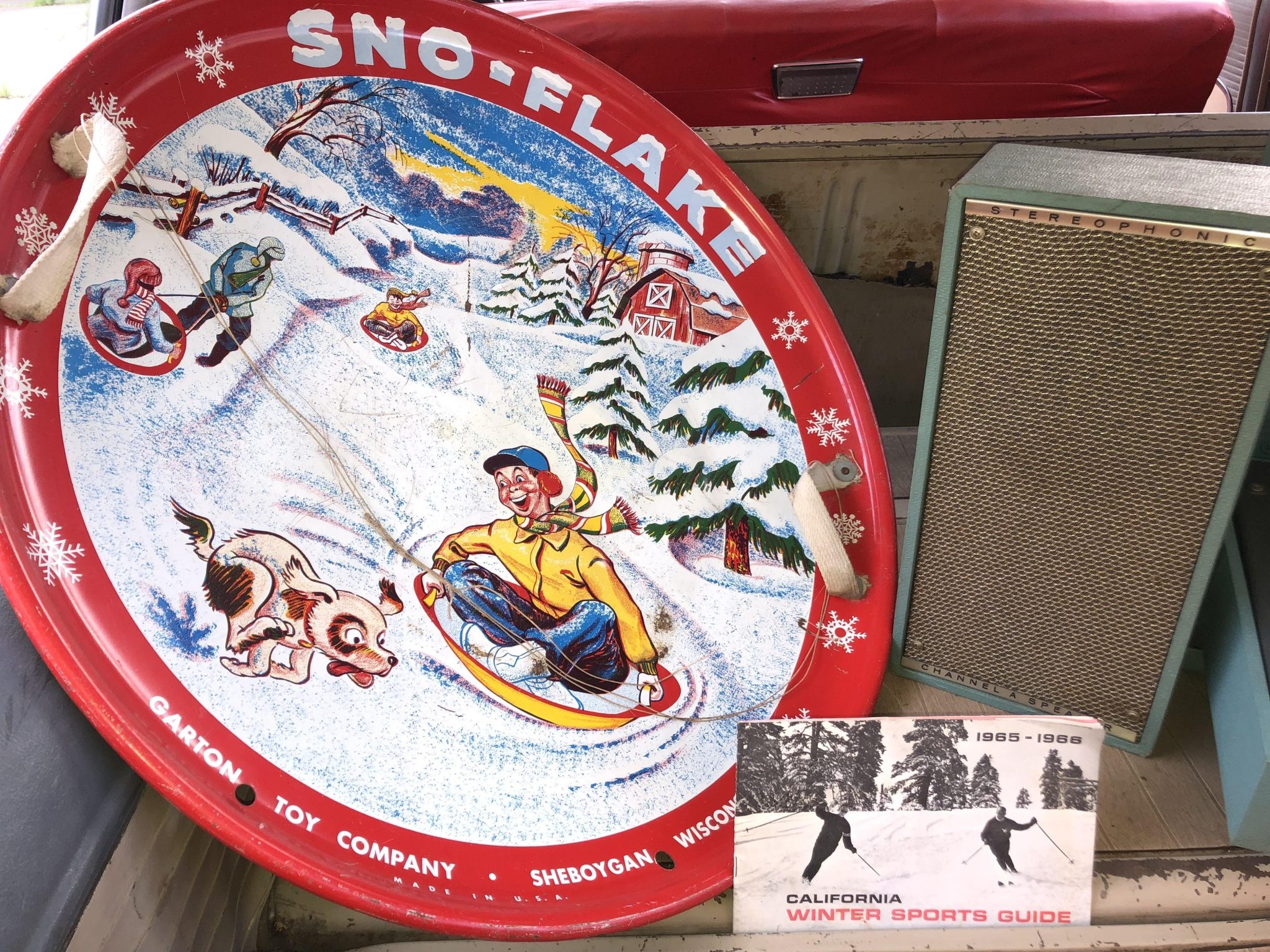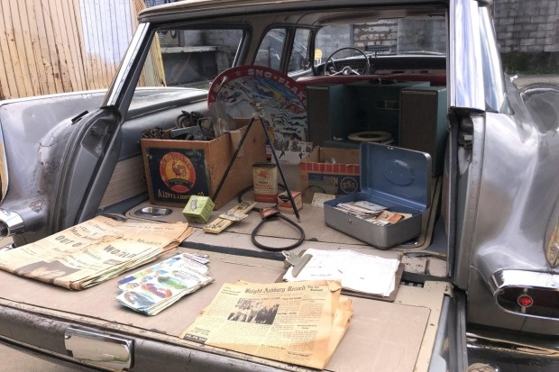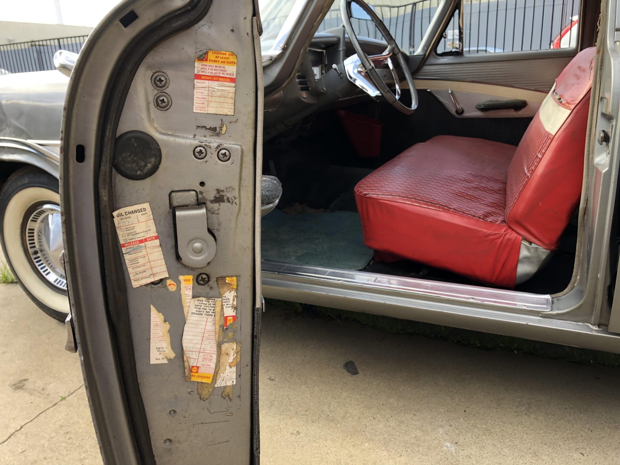 The car’s contents at the time of its recovery from storage accompany the vehicle and include a portable record player, a snow disc sled, assorted automotive and non-automotive parts, service receipts, and a variety of period California publications including newspapers, road maps, and a winter sports guide.