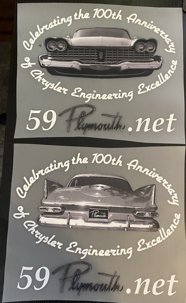 Excited about the Chrysler 100 Grand Celebration taking place at the Carlisle Chrysler Nationals? Celebrate along with the WPC Club, the Plymouth Owners Club, and the 1959 Plymouth Forum! Proudly support all three by making your own T-shirt. Here you can download transparent .png files to send online to the vendor of your choice, and easily iron on to a blank T-shirt.