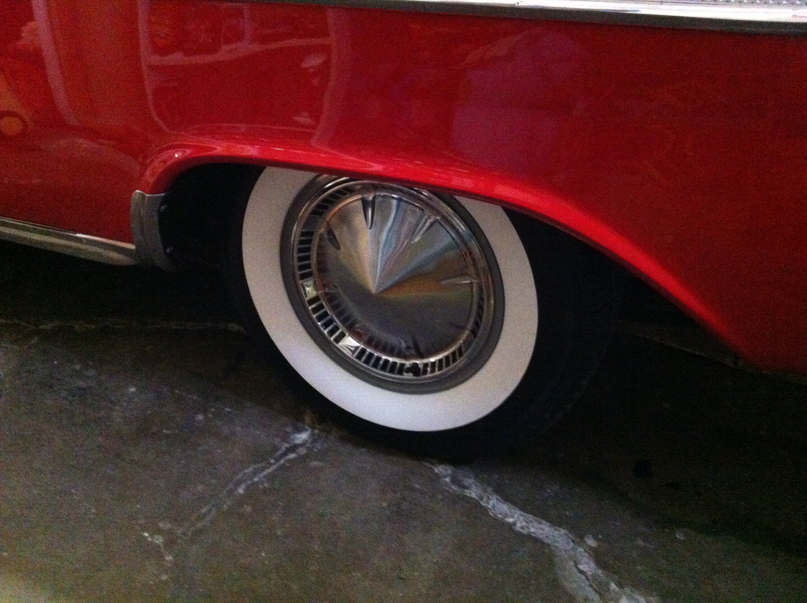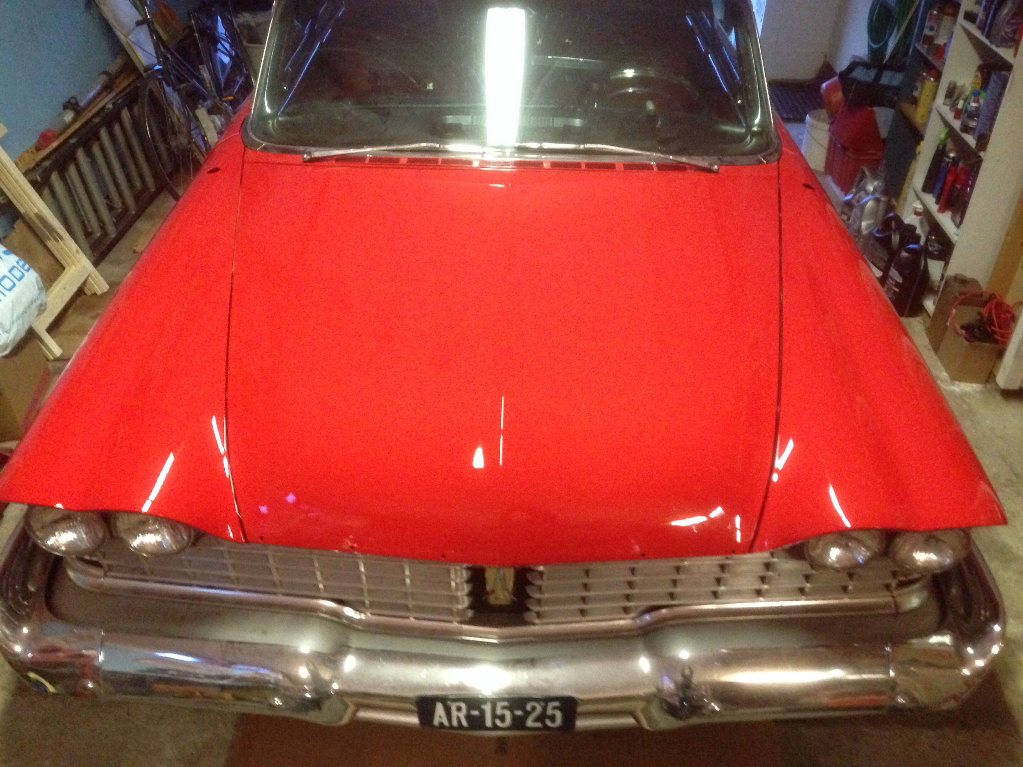 The “scratch” on the passenger front fender top was caused by me, in my garage. I was relaxing with a few beers, when I decided it would be a good idea to take down a cabinet I had screwed to the wall. Yup, I dropped it on the car.