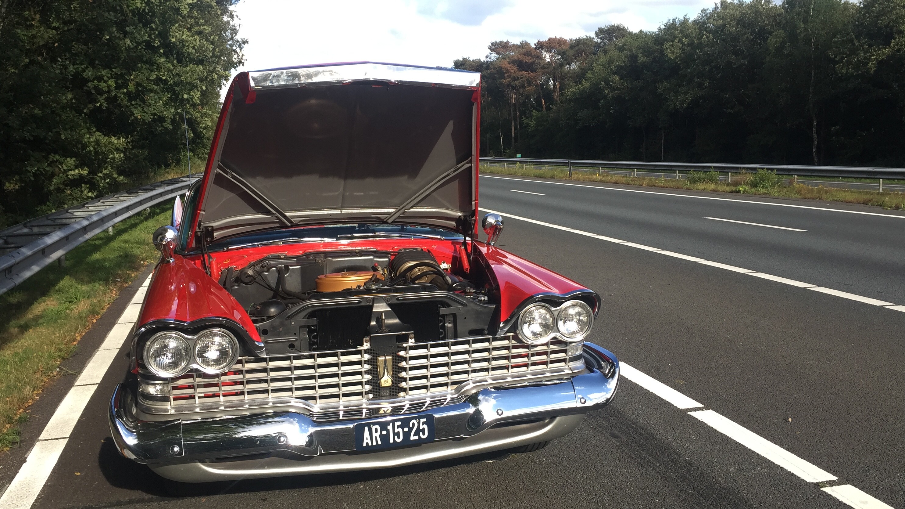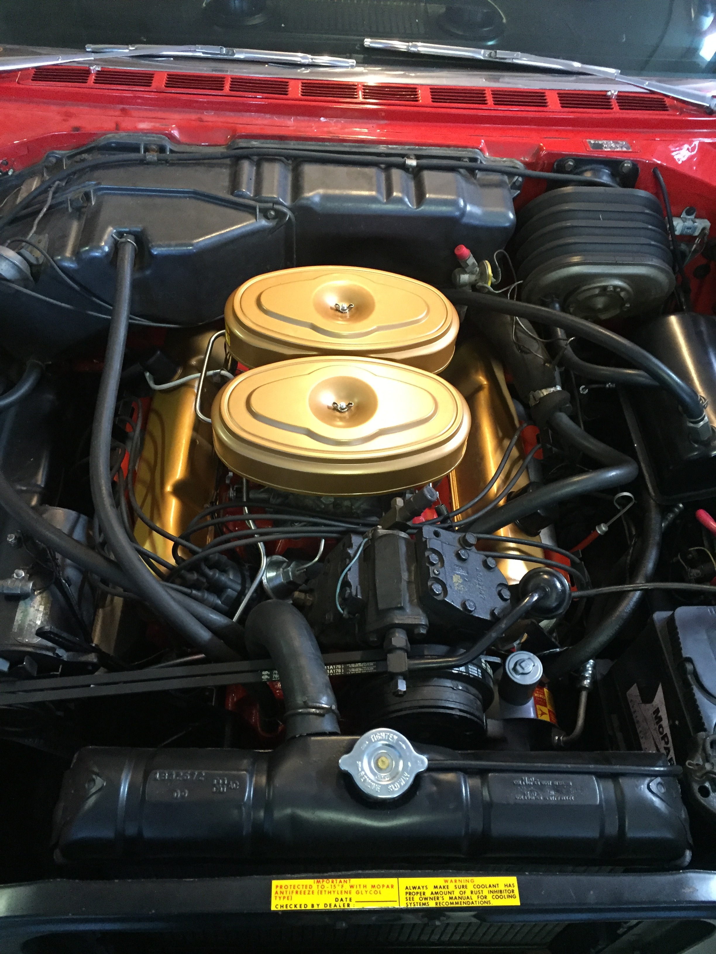 Wow! Really looks great! I have never seen a 59 Sport-Fury with dual four barrels, as well as air conditioning. John Quinn better step up… I have 300 E performance heads with the big valves and an intake, Just need better carbs. Matthew I still have 8.75 Mo-Par goodies for you. At your elevation a 361 runs as well as a 413 at my elevation. What was your over bore as well as camshaft specs? PM me if you want.
