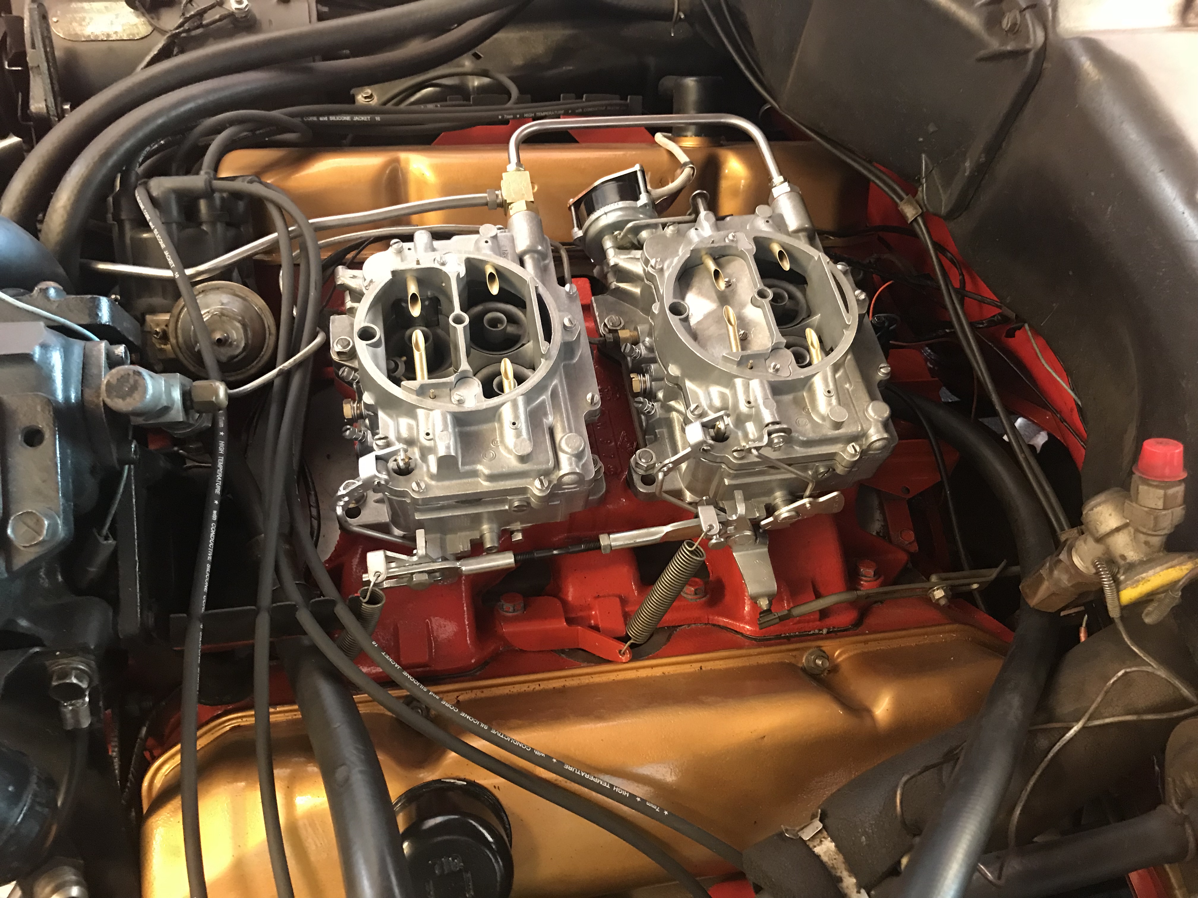 Recently I bought 2 original 58 Plymouth dual quad carbs on eBay and Frank knew somebody who could rebuild them. Decided to pick them up instead of shipping.