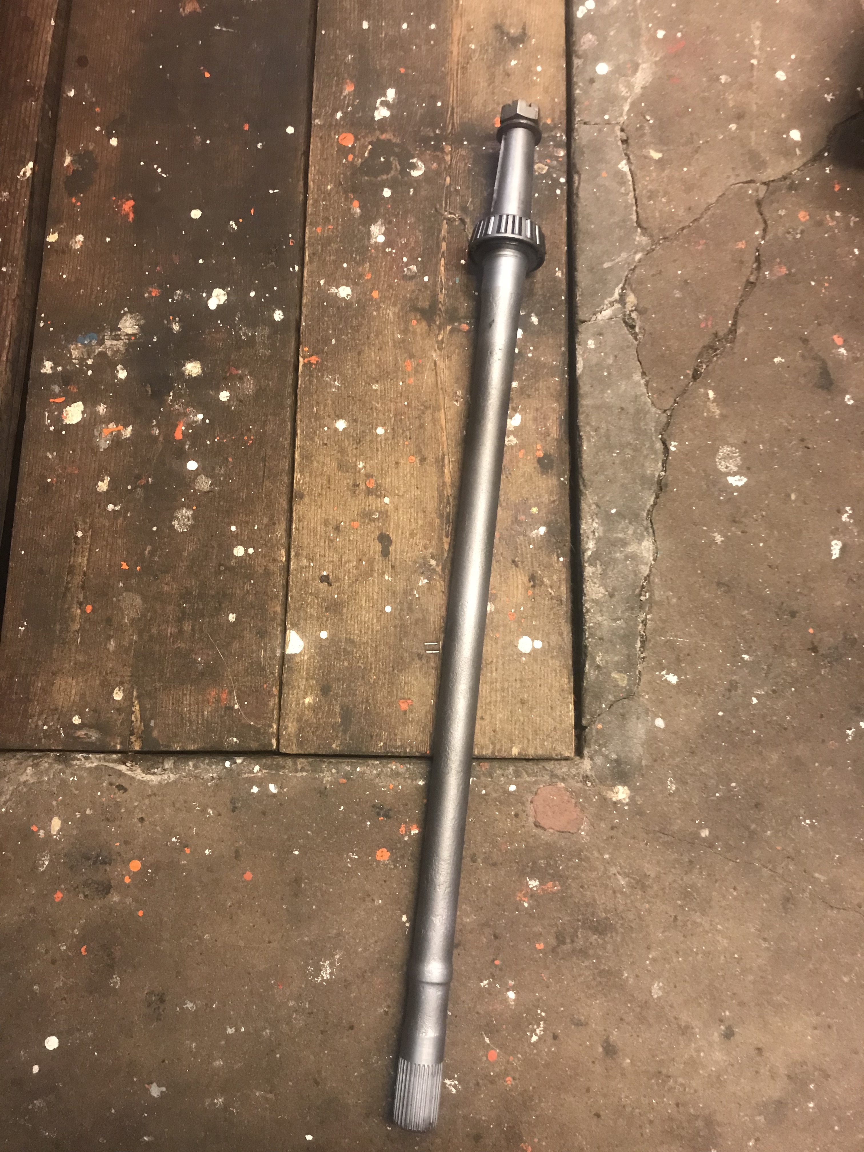This is how we do it! Cleaned the axle up and pressed a new bearing on it. It’s gonna be a brand new rear axle when it’s done