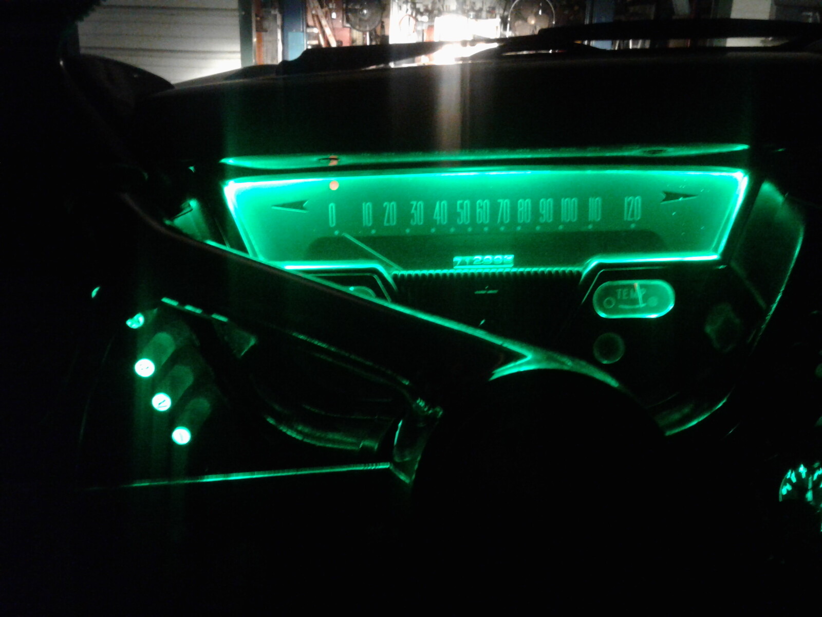 Just because it’s quiet around here… A pic Matthew sent me, of his dash lit up with green LEDs. He’s gonna give me some for Faulkner!