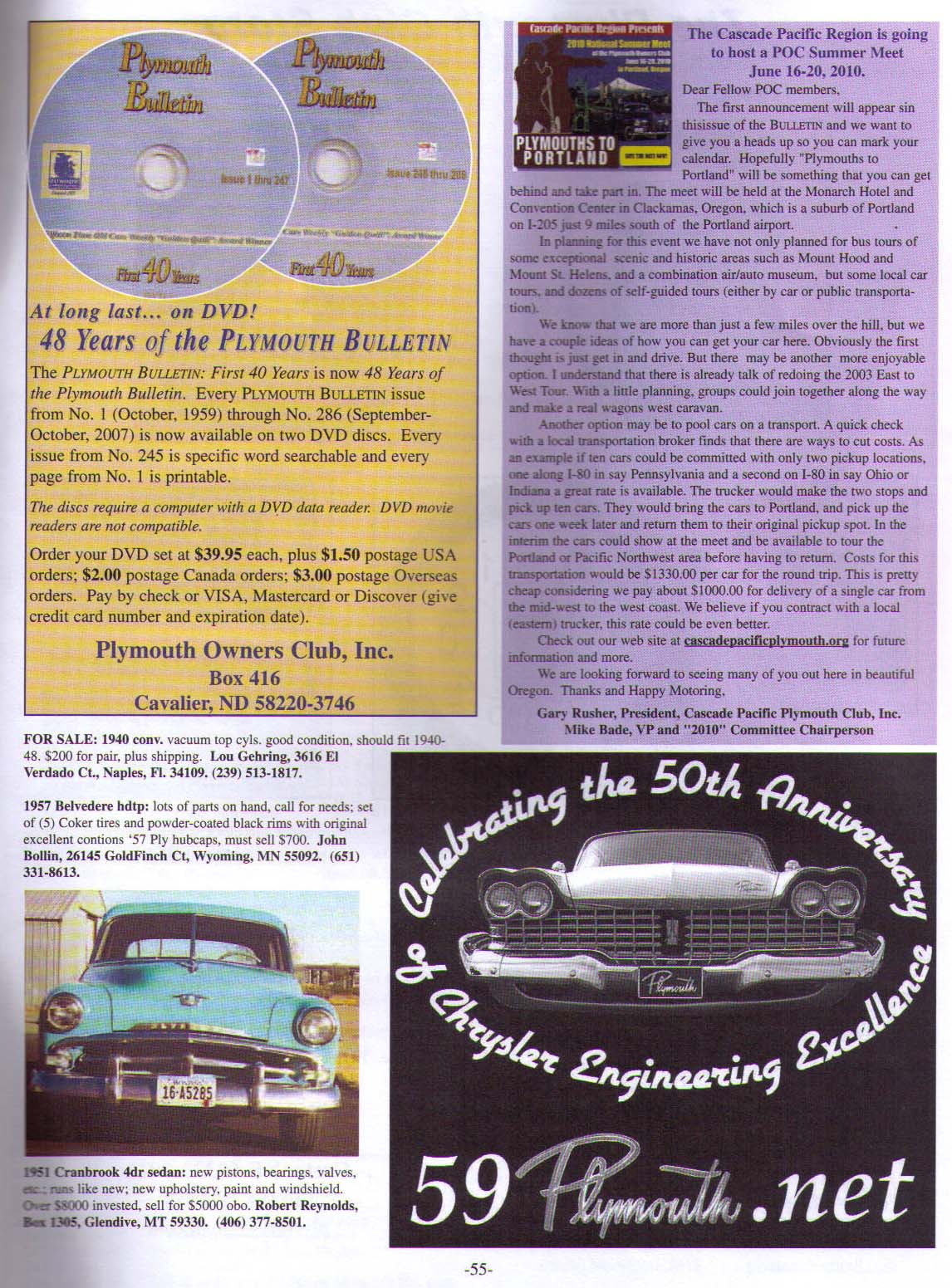 The latest issue of the Plymouth Bulletin (journal of the Plymouth Owners Club) arrived – the '59 issue is next! But here’s page 55 of V50 N4: