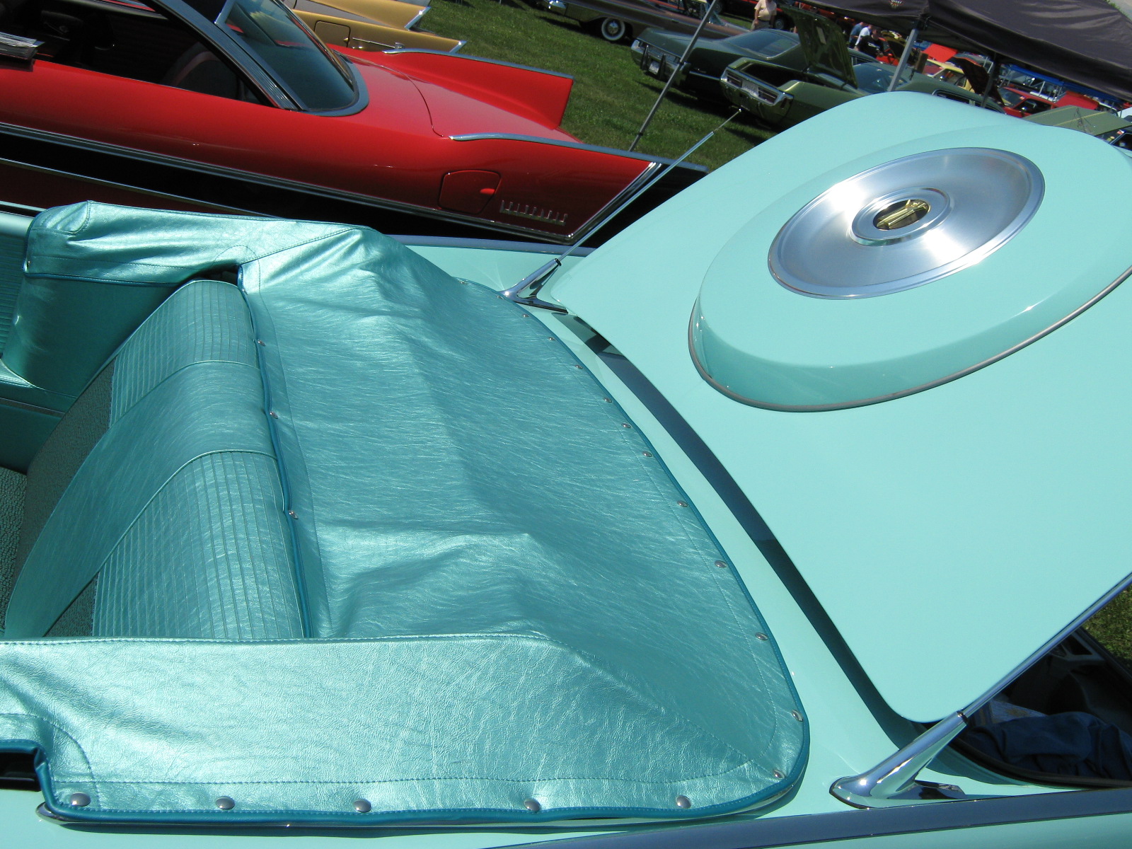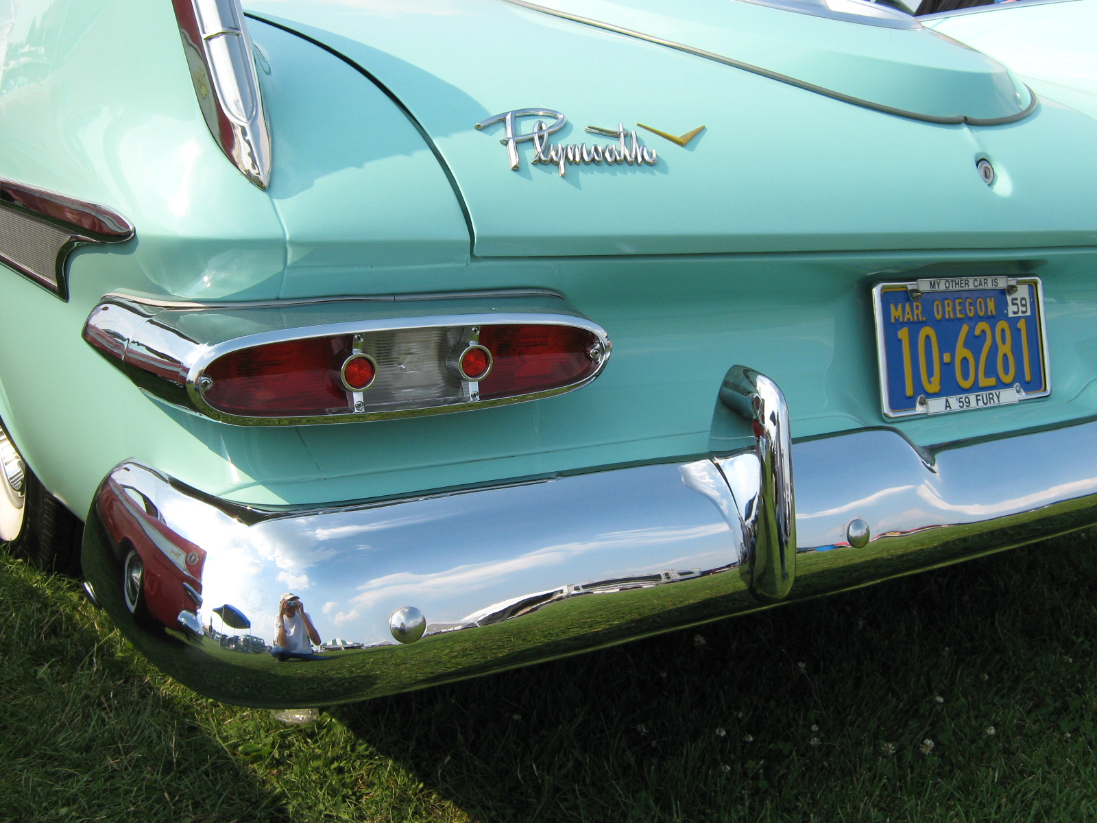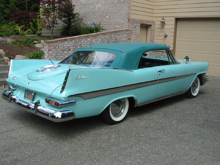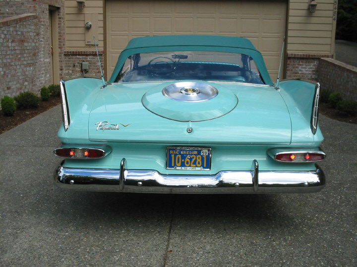 Tom writes: “I purchased this project in December 1998 and it was completed in June 2002. It has a 318 2bbl, with Torqueflite and has the following options: PS, PB, clock, push button radio, backup lights, dual antennas, dual pipes, dual outside mirrors left hand remote, deck lid tire cover, silver anodized insert in side trim, Sport Fury steering wheel, sill moldings, rock guards, rear bumper guards, full hubcaps, variable speed wipers and windshield washer. The PS, PB silver inserts and bumper guards are original to the car, everything else I have added from my parts. This is the third 59 Plymouth I have restored and my first convertible.”