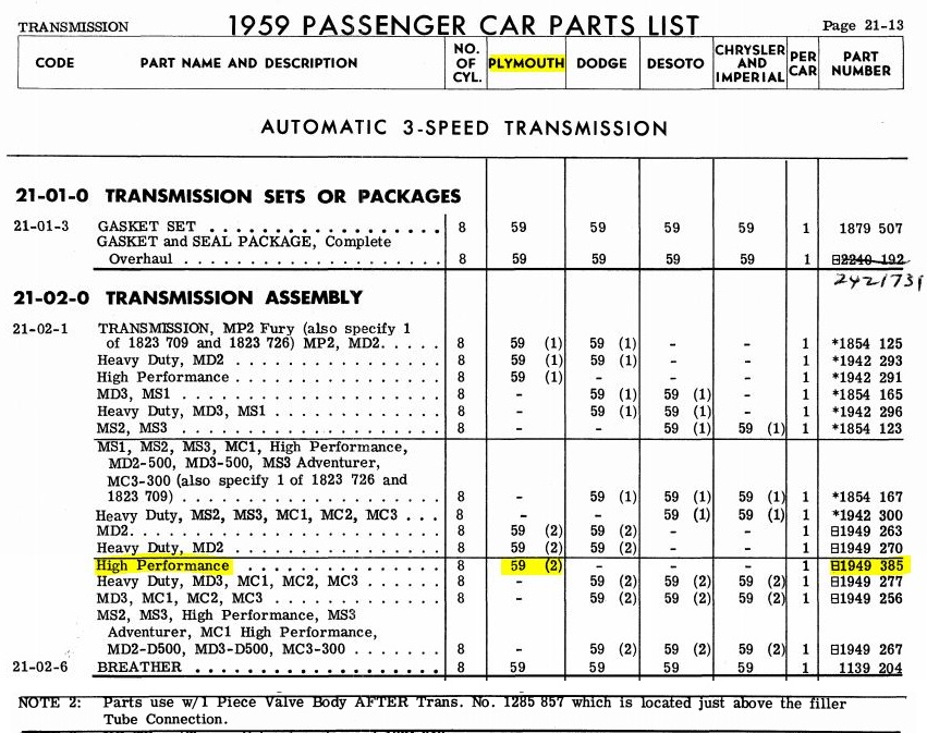 Gotta love the parts manual for our 59s! I spend a lot of time reading through it ha! As Dan highlighted, looks like you have the high-performance TF to go with the big block and performance rear end! What score on your SF!