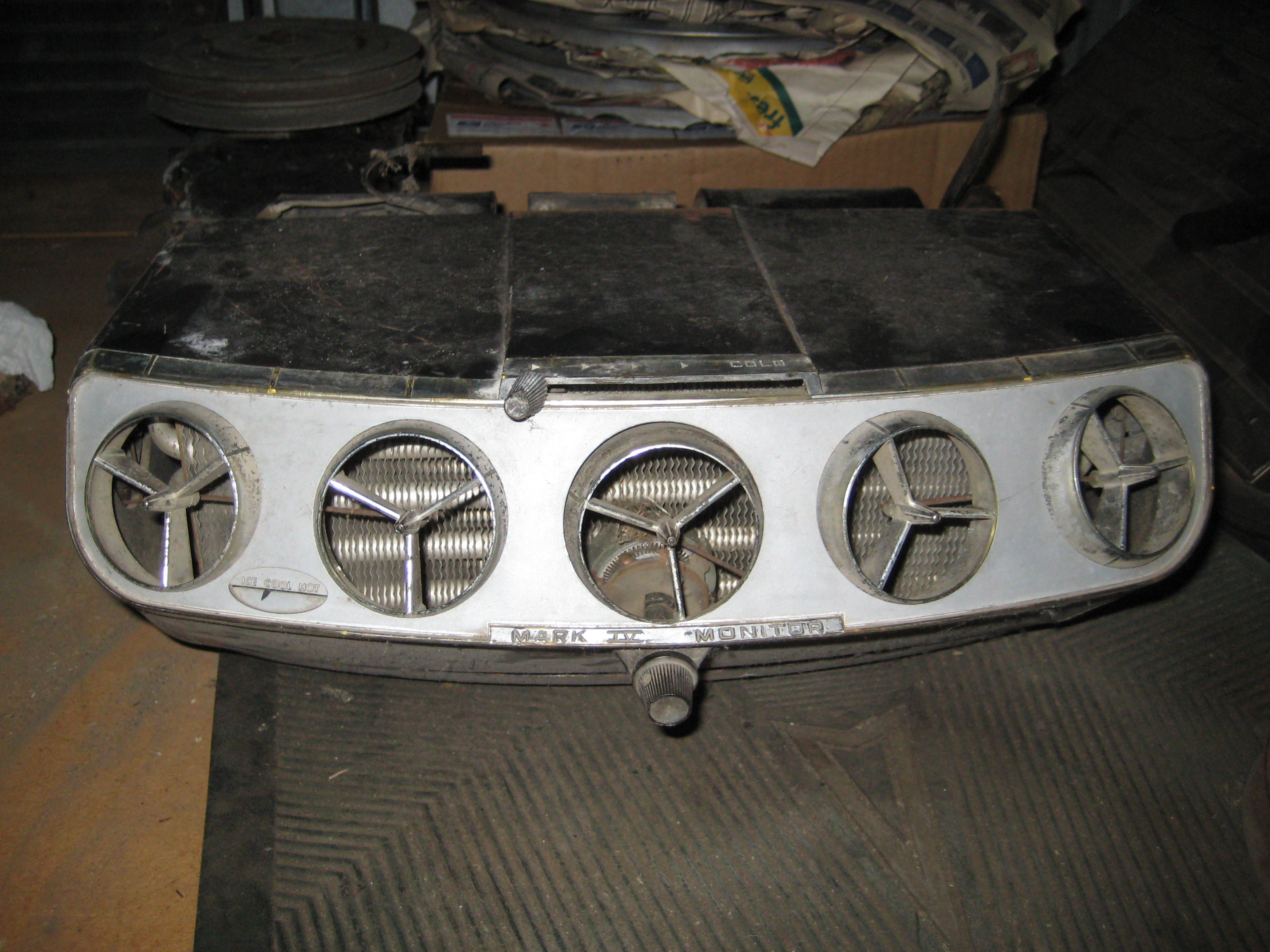 The compressor unit was made by Borg Warner while the underdash evaporator unit has the markings “Mark IV Monitor”