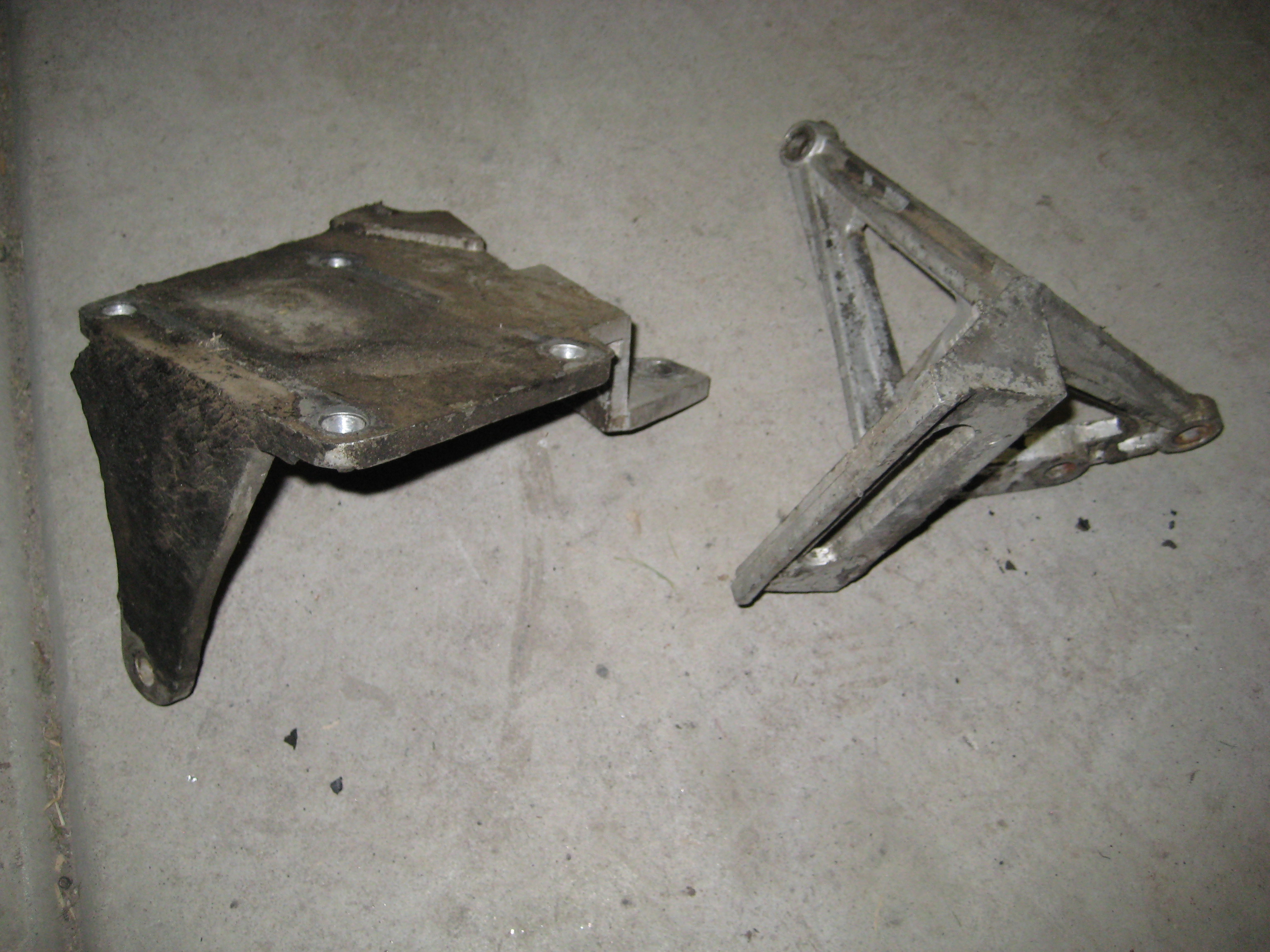The flat top bracket shown in the photo bolts on above the water pump and also uses one of the bolts for the thermostat housing, the compressor then sat right on the top at the front of the 318.