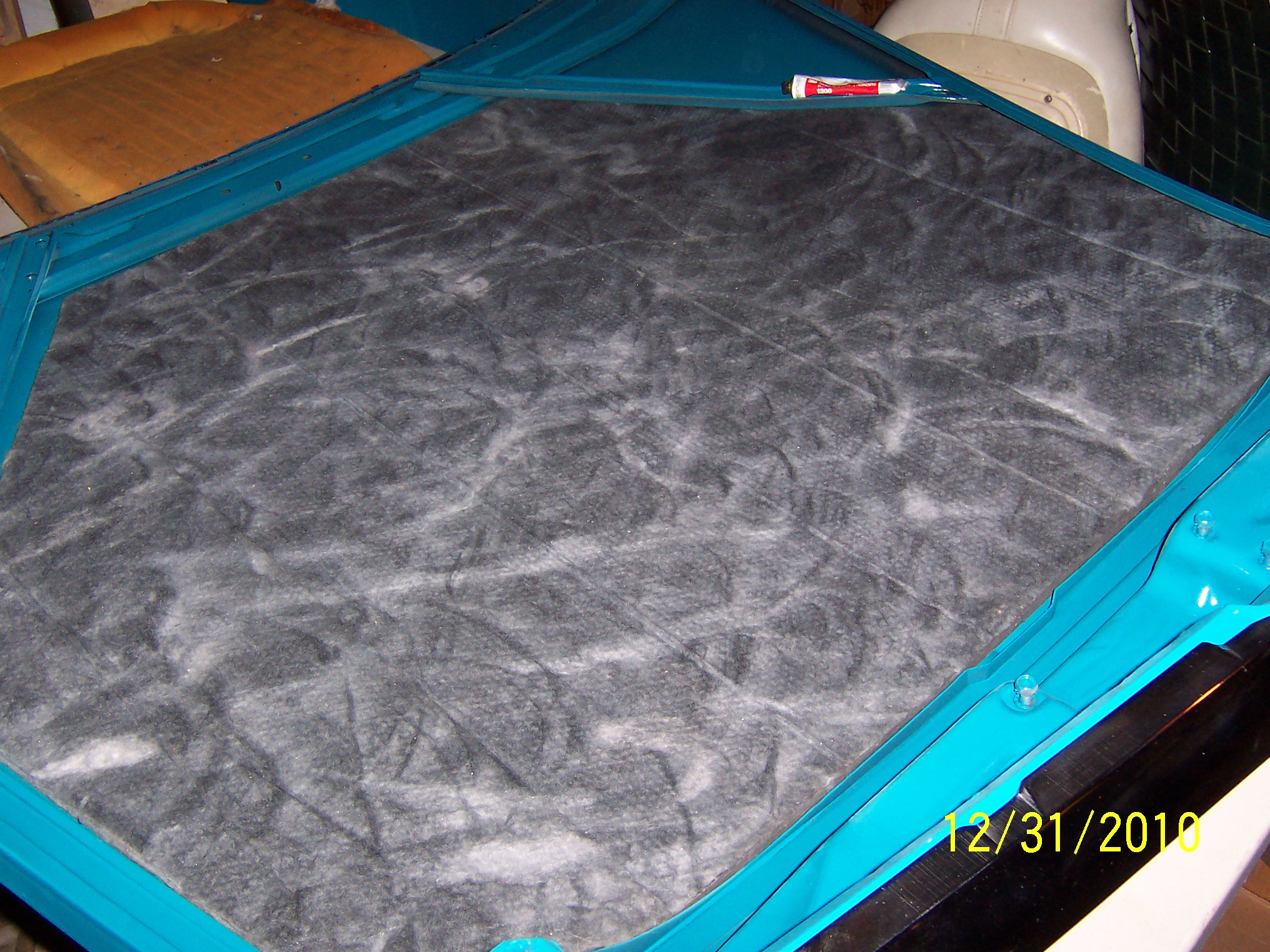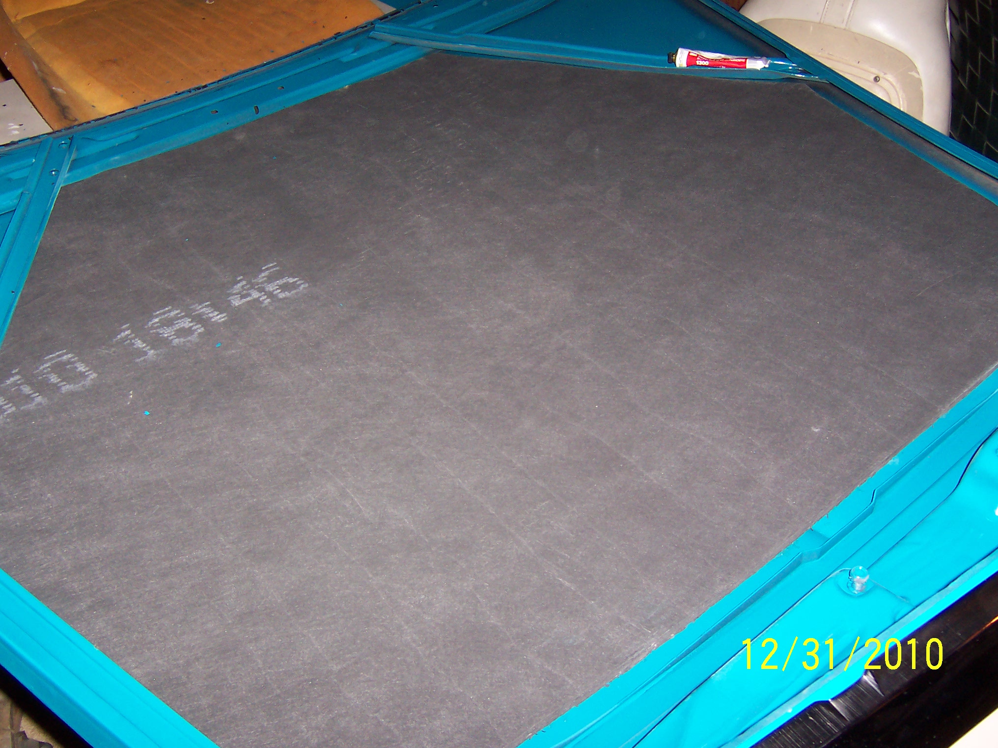 I have also put a clear picture of Tom Fox’s beautiful Belvedere convertible which shows the spring rod support with out a sound deadening pad applied, just for a comparison of my style with out the support rods.