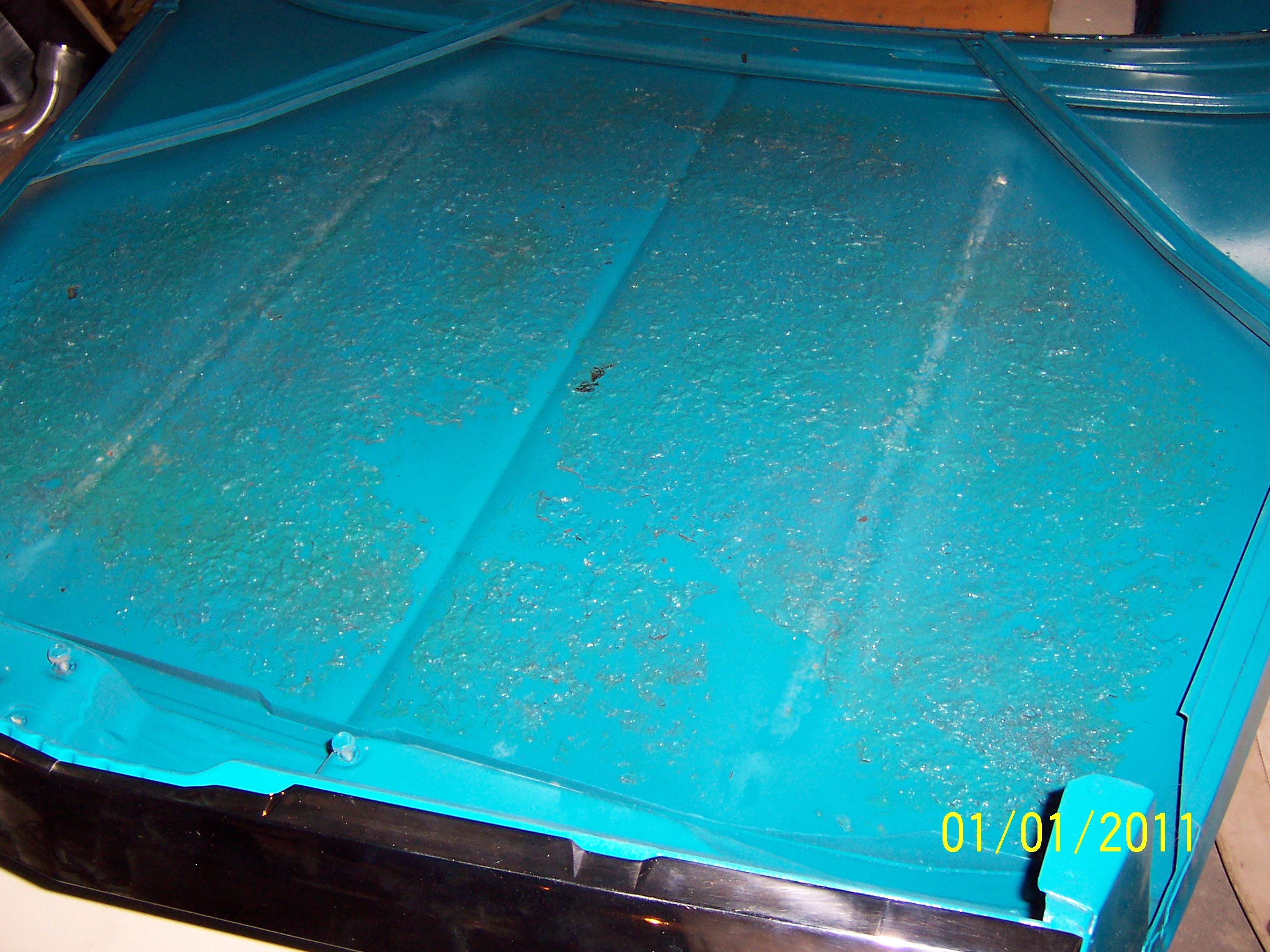 You can also see my style of underhood bracing is the vesion with out the Welded pad/spring rod style that prevents oil canning of large un-supported steel area’s. Both are correct production styles.