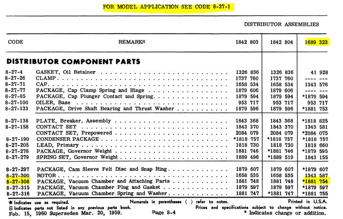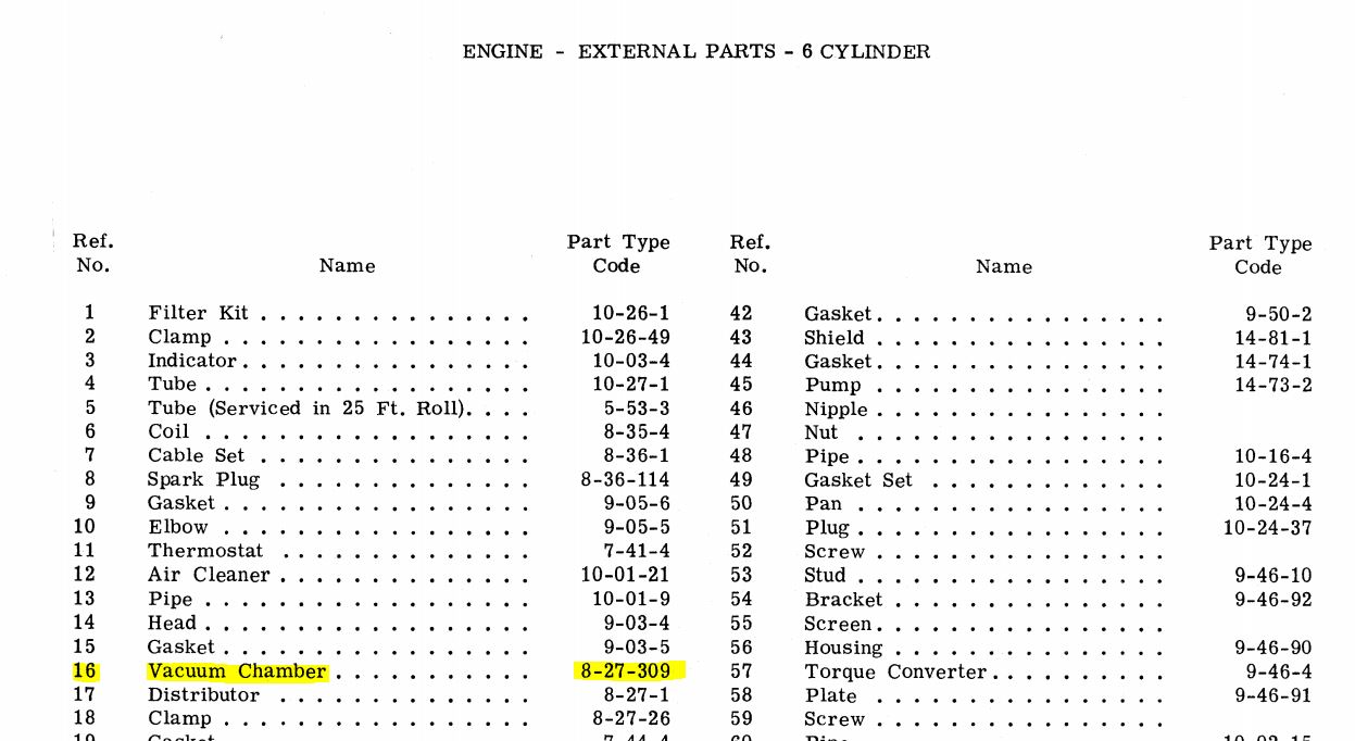 Does anyone have the part number for the vacuum advance for my 59 230 savoy so I can get the correct one?