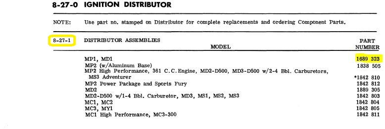 Here are the relevant snippets - looks like 8-27-309 is the MoPar number. NAPA ought to be able to provide this part.